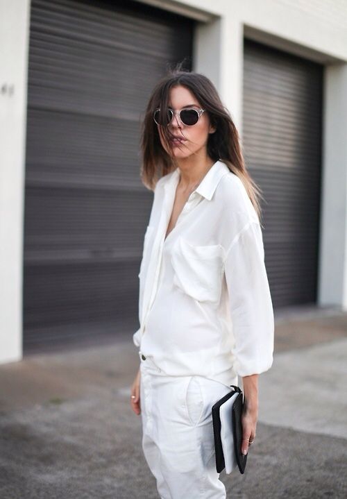 一件寬口褲或一件超有氣勢的外套,就是最摩登的工作裝扮,屏除沉重正式的黑色,白色將讓你看起來幹練又時髦。