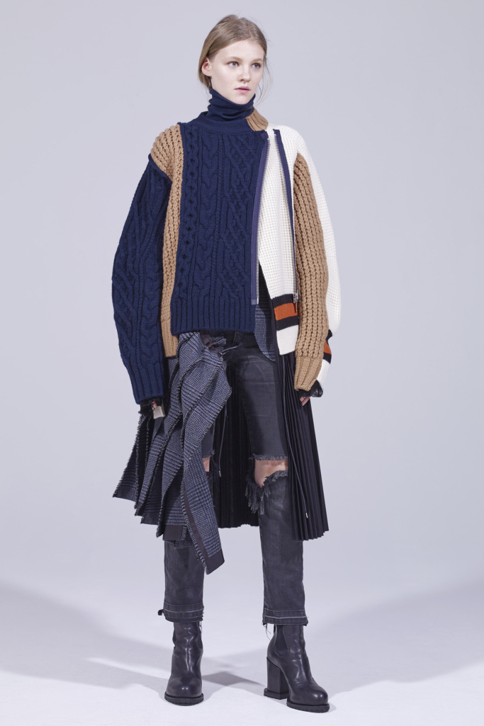 這是屬於Sacai 的秋冬衣櫥,Abe 運用她標志性的拼接、不規則剪裁與層叠設計技巧,打造出華麗靈動女裝。即便時裝的設計元素稱得上繁雜,但設計師了解種種成分之間的關聯,也清楚在何種形式下使用這些元素最爲妥帖。