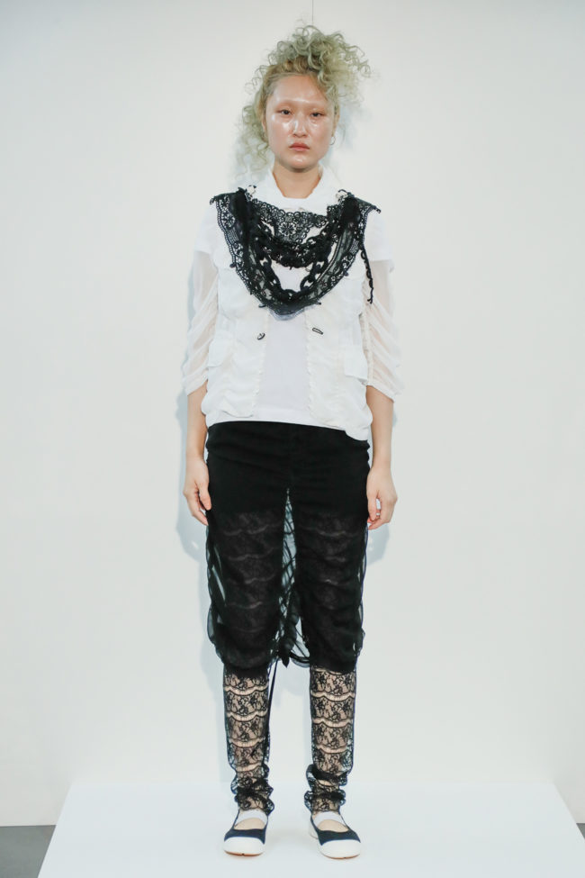 tricot COMME des GARÇONS 由深受川久保玲賞識的徒弟Tao Kurihara主理,在保留主線一貫作風同時,還滲入有Tao 獨家的女性化設計元素。這一季也不例外,俏皮且柔和的女性化元素在保留了經典廓形基礎上,還加入碎花雪紡、荷葉邊、蕾絲,甚至是惹眼的百家拼接,整體看來更有種出塵的恬靜美態。