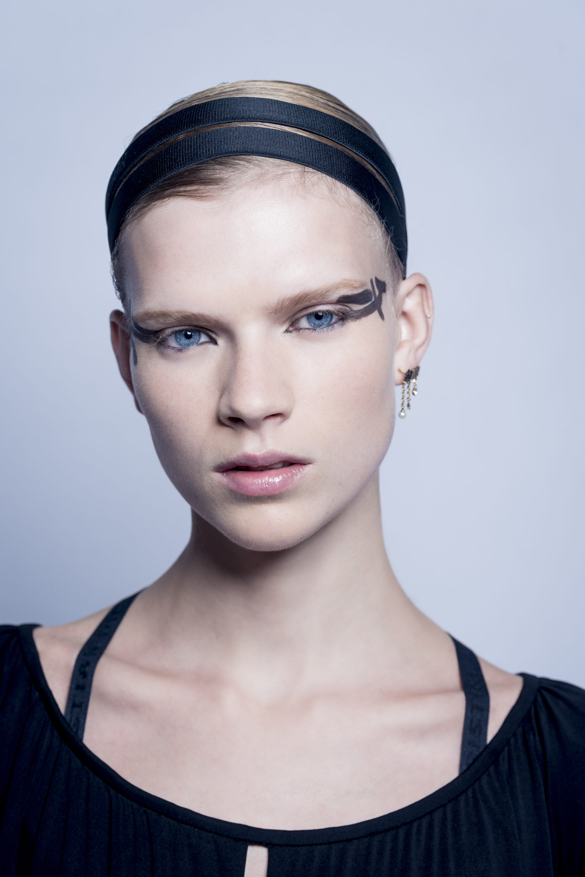 Peter Philips 透露他使用了超完美底妝系列搭配Dior後台彩妝雙用水粉底,打造精緻度滿點的裸妝,再用豐漾俏唇蜜強調雙唇線條,最後將幾何圖騰放上眼妝,看似大膽雜亂,實則鮮明有力的線條,再將幾何圖騰融入眼妝,整體妝容乾淨俐落,僅以舞台效果的眼妝訴說感情,宛如一齣充滿女性力量的舞碼在眼眸舞動,展現了現代Dior女性剛柔並濟的力與美。