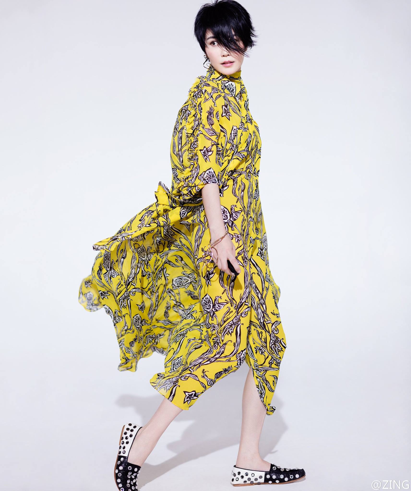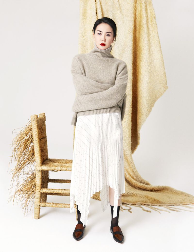 作為一代文青形象歌手,不常在私服當中假以過多裝飾的王菲偏愛百褶細膩的垂直線條表現,她曾將 Céline 2017 年春夏系列中的紫羅蘭色百褶洋裝穿至演唱會宣傳活動之中,也在大片裡演繹了 Céline 不規則下襬百褶裙的柔美與氣勢。