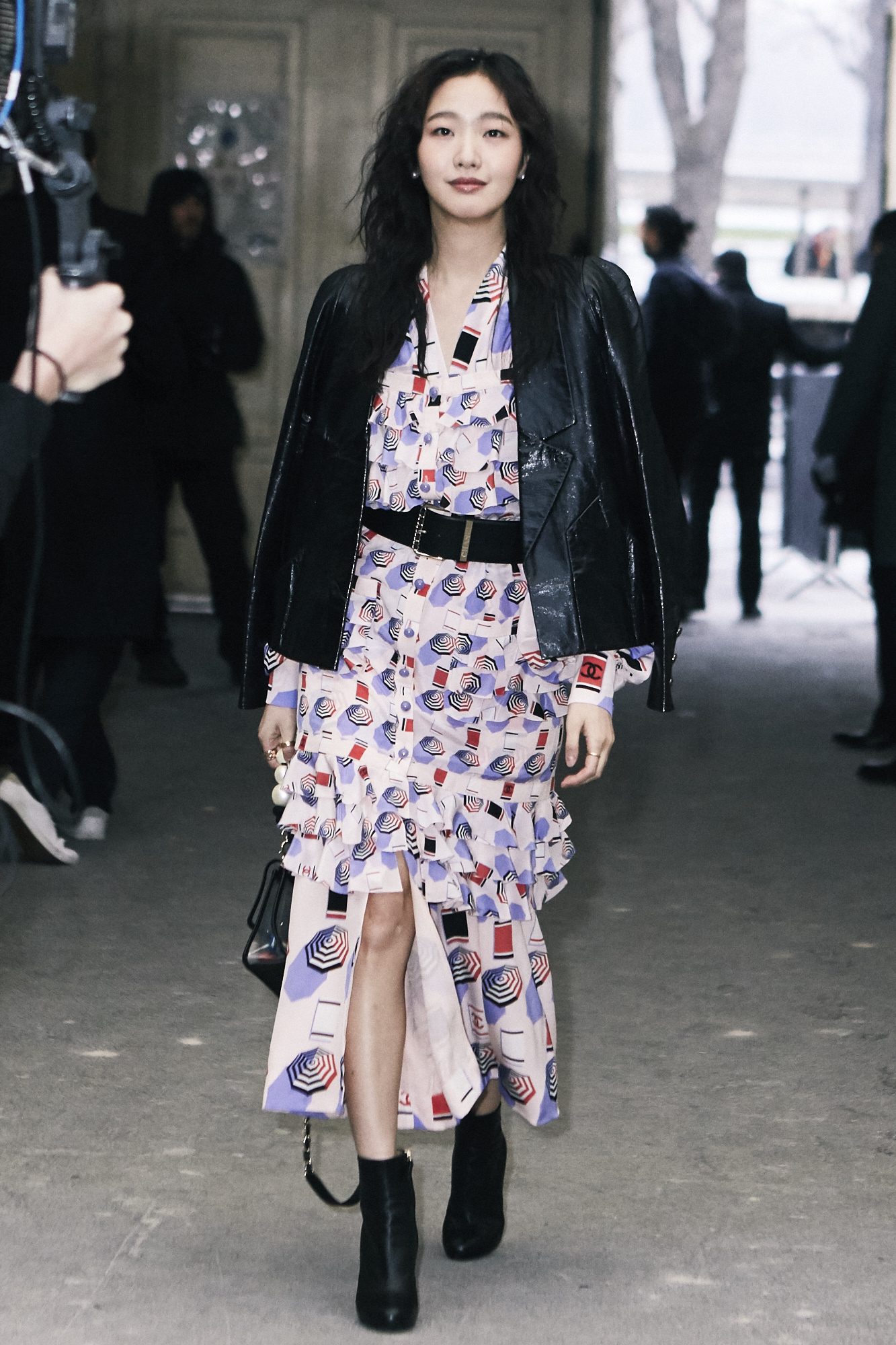 燙了一頭浪漫波浪捲的金高銀,最近飛到巴黎出席 Chanel 2019春夏高訂大秀,儘管巴黎的氣溫是零度以下,甚至下了雪,但是金高銀就是有股溫暖的魅力,讓人看到她,也提早感到春日的暖意,她身穿Chanel 2019春夏成衣系列的印花連身裙現身,腰間繫上黑腰帶,更加顯出她均勻修長的腿部線條,舉手投足間散發著不同以往的成熟女人味。
