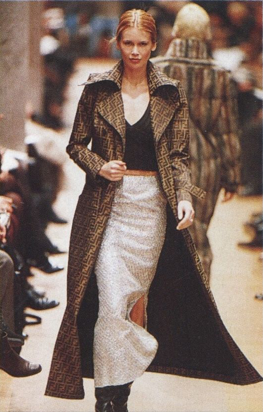 Karl為90年代的Fendi帶來了嶄新的創作風格,由Naomi Campbell、Yasmeen Ghauri和Nadege Du Bospertus等模特演繹充滿野性美的華麗風情,鮮豔的用色、嬉皮感強烈的流蘇造型、多層次的民族風飾品等等,共同上演一場極繁主義(maximalism)風格的時尚饗宴。