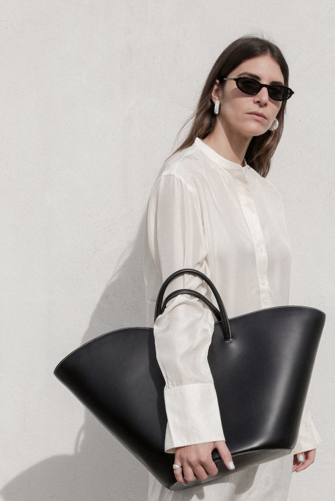 流動的外型,宛如自然界中的有機體、或是一座藝術雕塑品,Open Tulip Tote 使用滑順的小牛皮,搭配棉帆布內襯,內附拉鍊隔層和皮革內袋。除了手提把外,另配有可拆式肩背帶方便替換風格。Open Tulip Tote 共有三種尺寸、顏色的選擇,適合上班、通勤族使用。