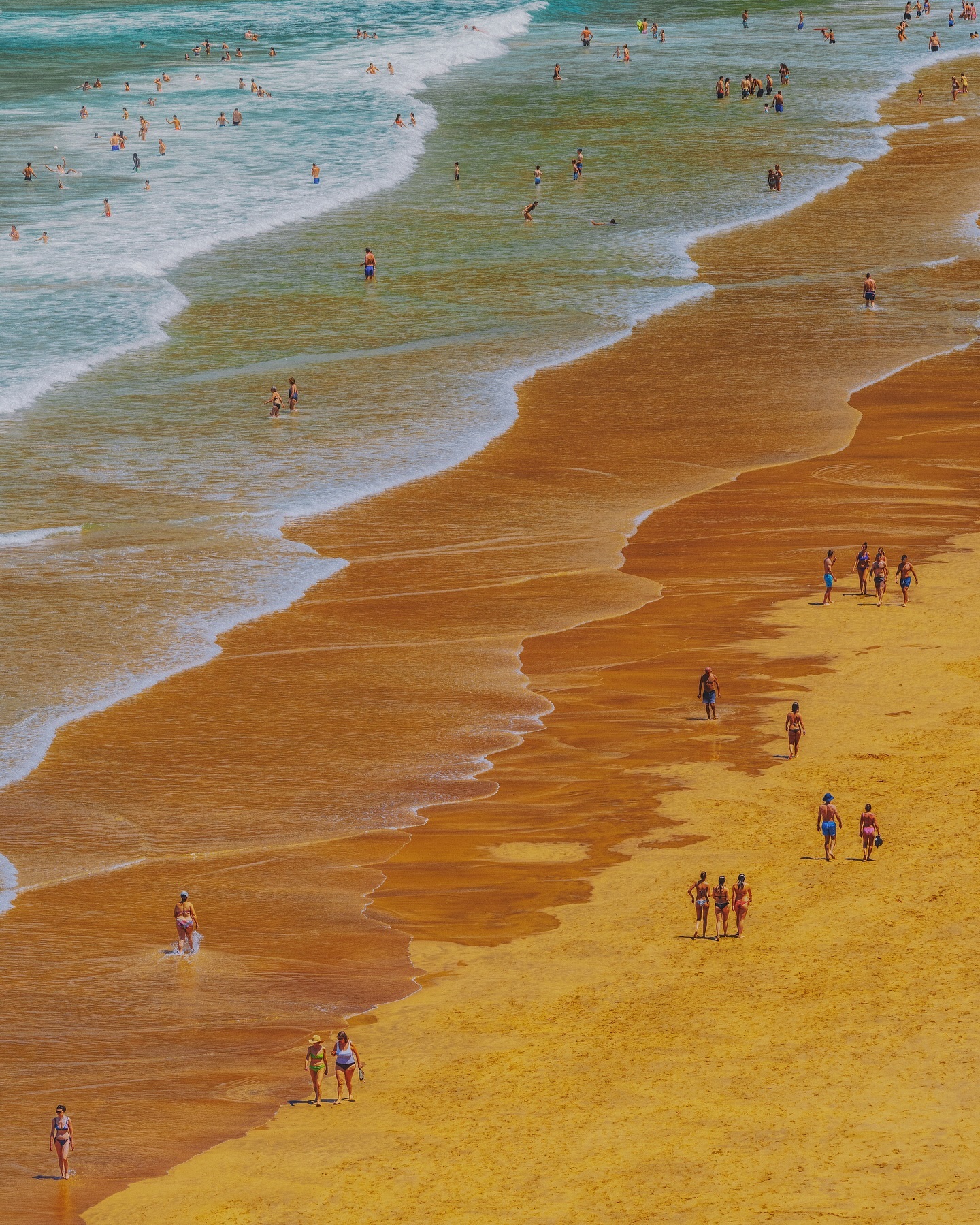 點開 Yosigo 的 Instagram 頁面,宛如 Wes Anderson 的方正格局、和諧的統一色調,以及幽默獨特的敘事構圖,讓人一看就無法忘記。不管是沙灘上的各種活動、海水面的粼粼波光、或是大樓的建築曲線,都靜靜的被保存在 Yosigo 的底片裡。