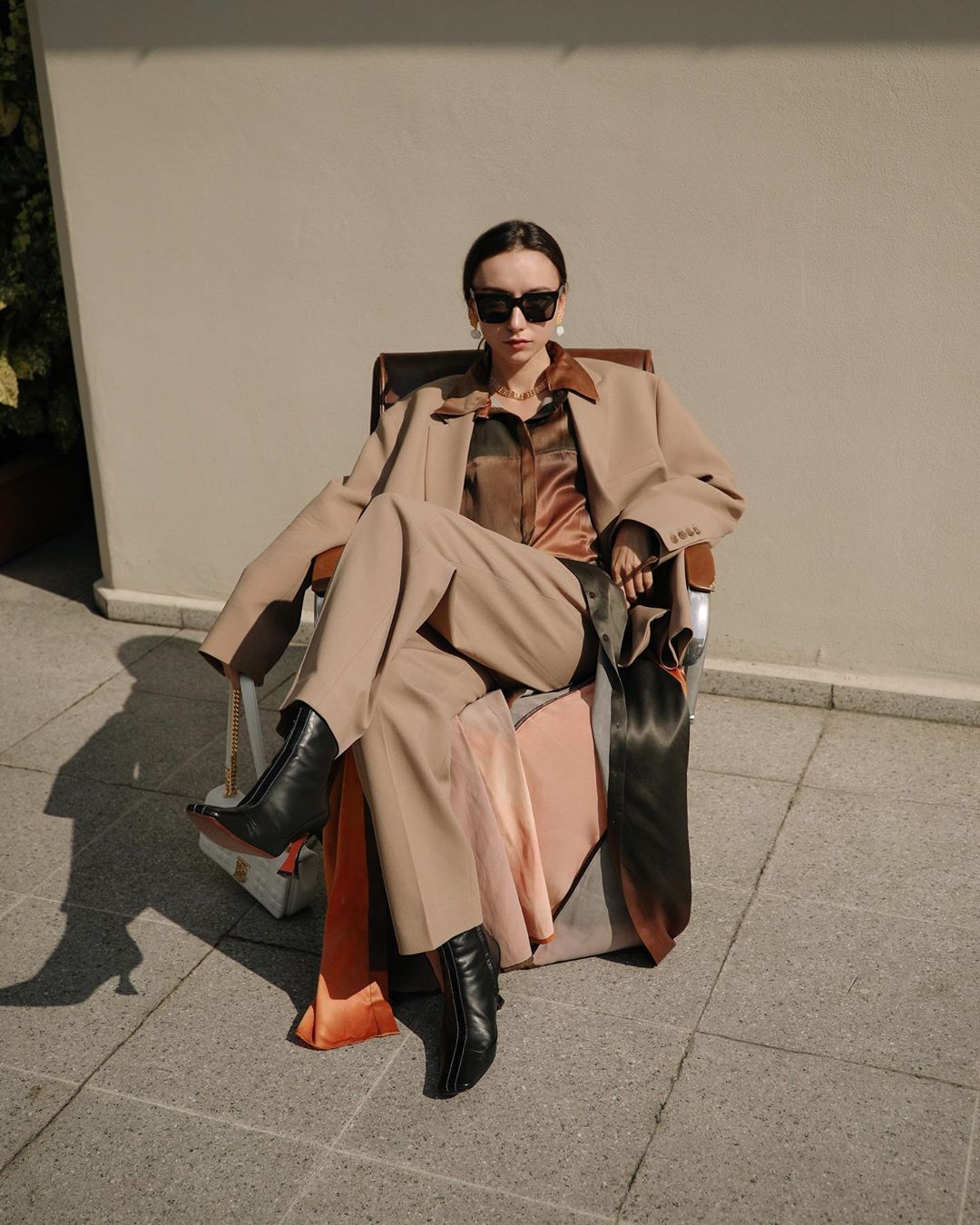 暖色的部分可以多用咖啡、杏色、卡其來作為風格主體,再挑選帶有紅、黃、橘色調的單品配件做妝點,也是最常見的一種搭配。電商平台 Mytheresa 的時尚採購 Tiffany Hsu(@handinfire)就常以這個技巧呈現靈活穿搭,運用紅棕色調展現優雅的秋季氛圍。