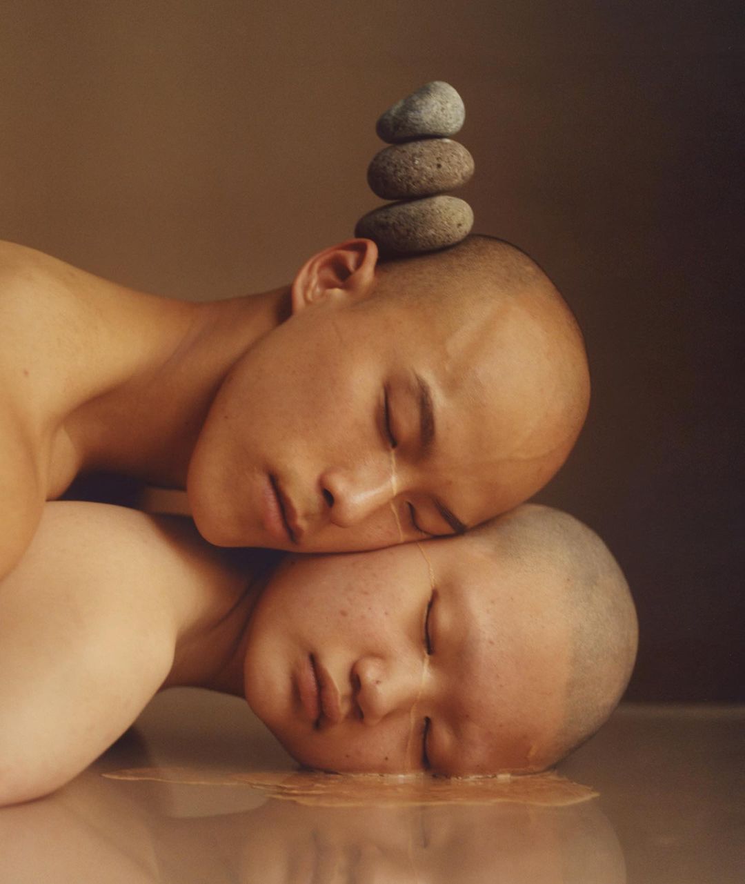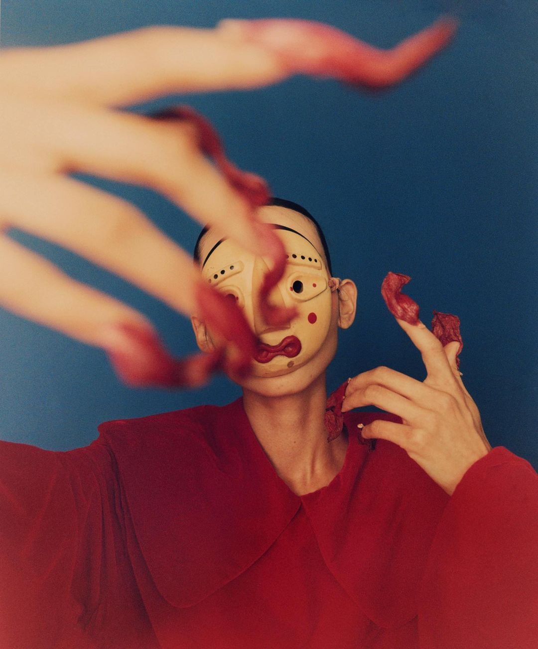 戴著奇異假髮、畫上暗黑妝容、擺出詭譎姿勢的模特們,身著華服抑或裸身,於精心設計的場景中上演飽含情緒的默劇,充滿對比性的各種元素相交容或相抵觸,巧妙模糊了真實與虛構世界的界線,同時又以充滿力道的影像感染力,擄住對寂寥日常感到無力的觀者目光,將我們的意識帶至其汲汲渴求的幻想境地。
