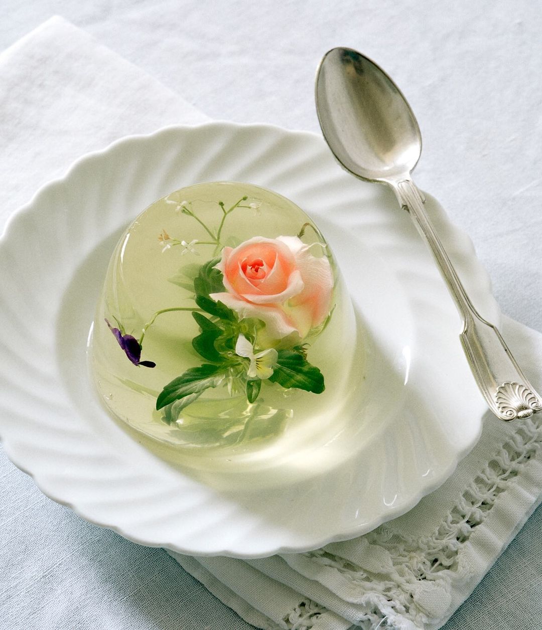 當然,你也能夠在上方灑上金箔,或是在製作果凍時,加入喜歡的花材或水果,就能變成一個宴客甜點。
