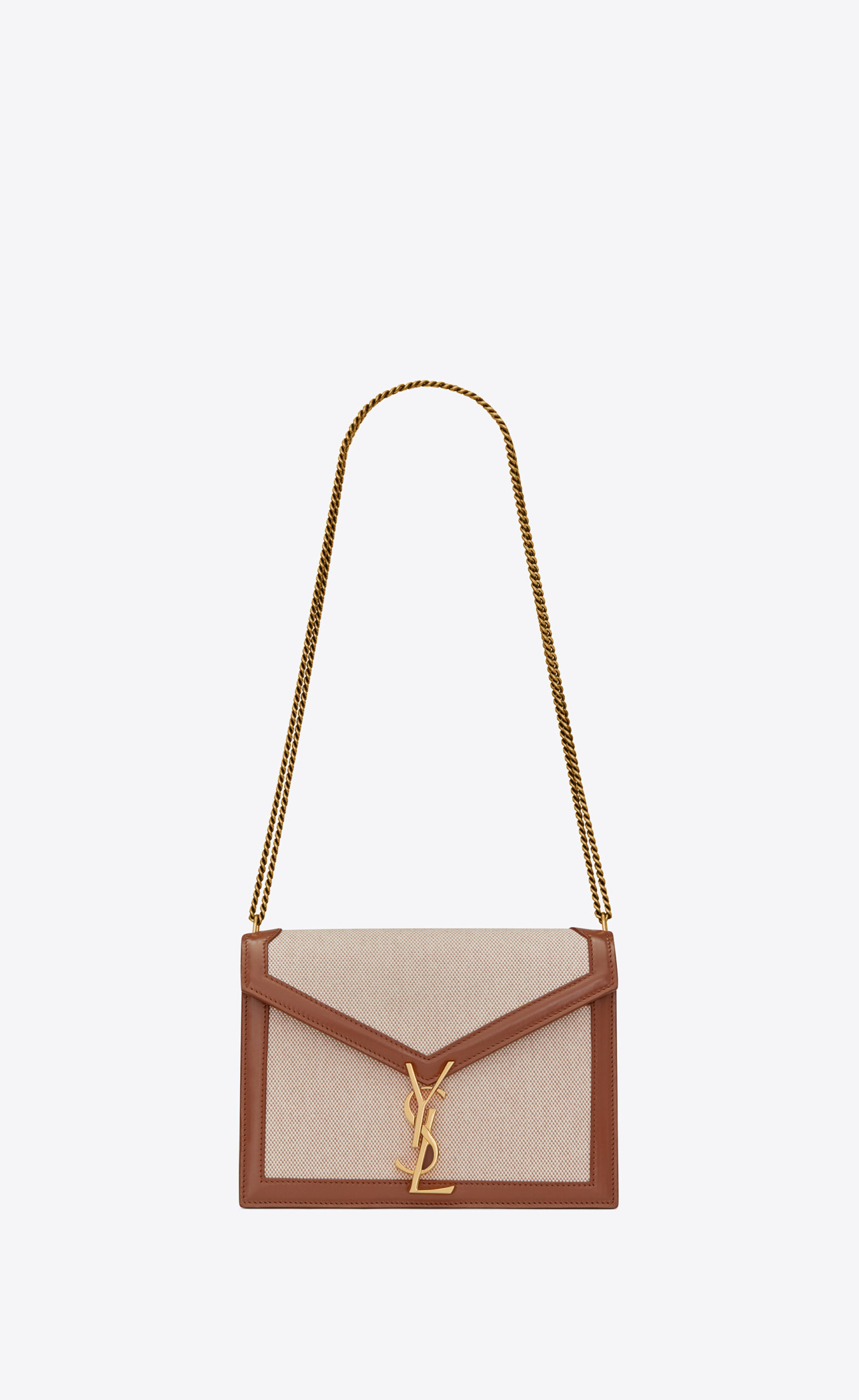 CASSANDRA 棉質帆布與焦糖褐色小牛皮鏈條肩背包 NT$76,350/HK$ 19,100