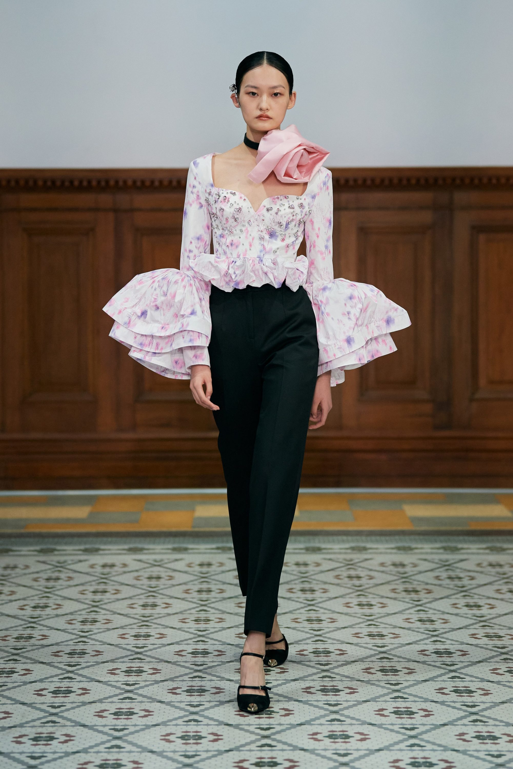 除此之外,他的設計中也不乏大量的單色留白,與印花相互映襯,宛如一首春日的詩,複製少女即將盛開的姿態,一如品牌正要嶄露頭角的自信。