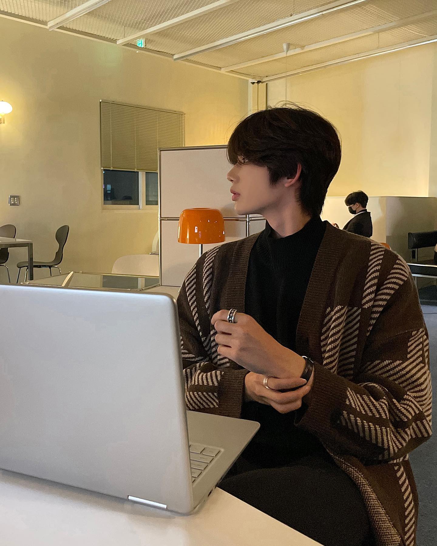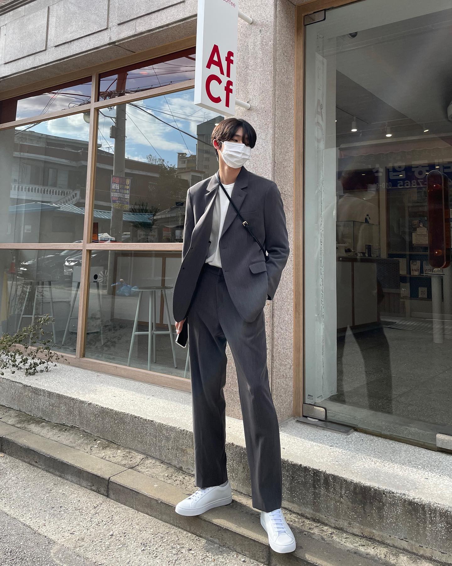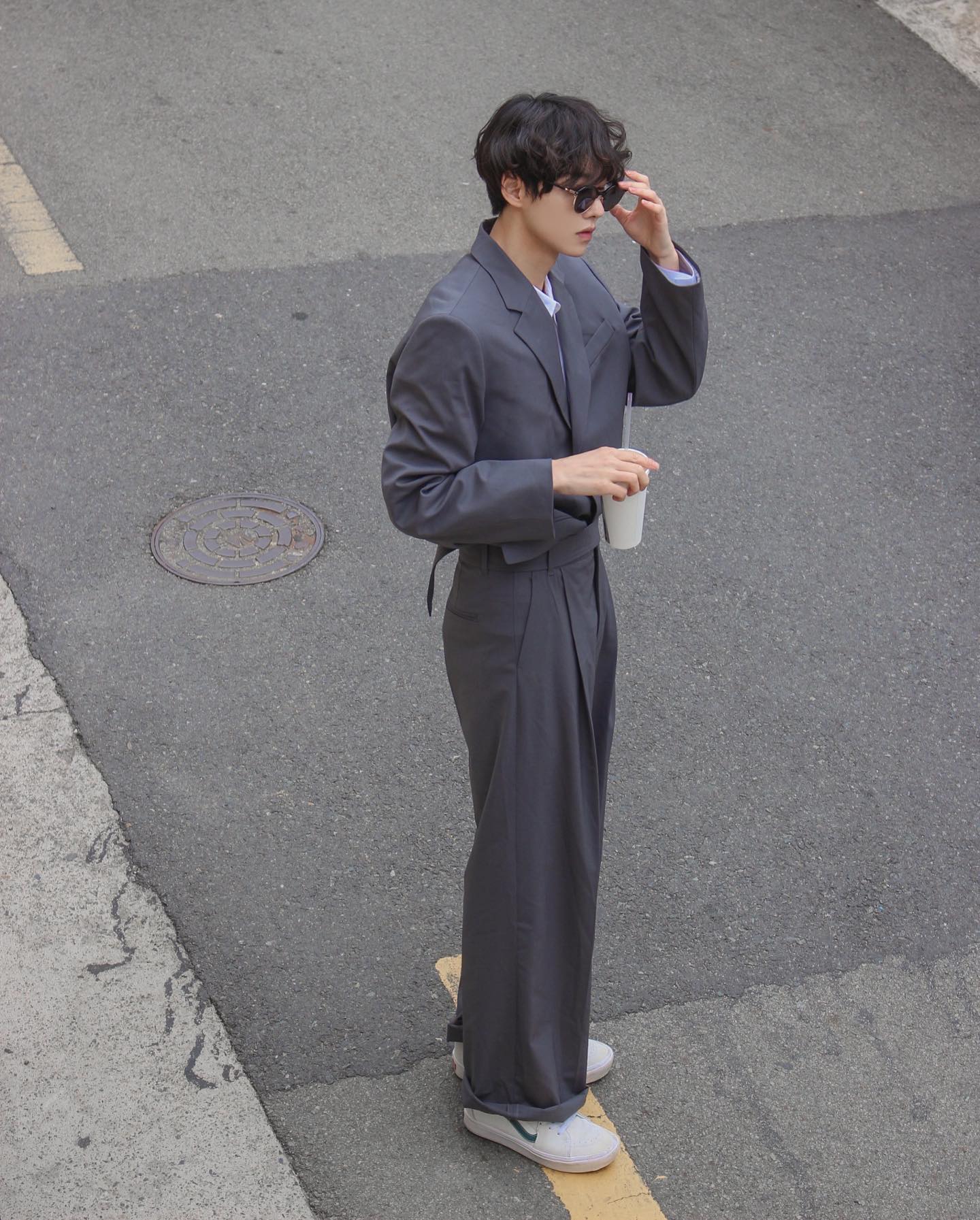Seo Hongil 有著模特般的身高181公分,腿長的身型穿起西裝套裝來特別帥氣,編輯我也私心大愛他的正裝穿搭,就算沒有厲害的層層疊穿,光是選對合身的俐落剪裁就好看到不行。