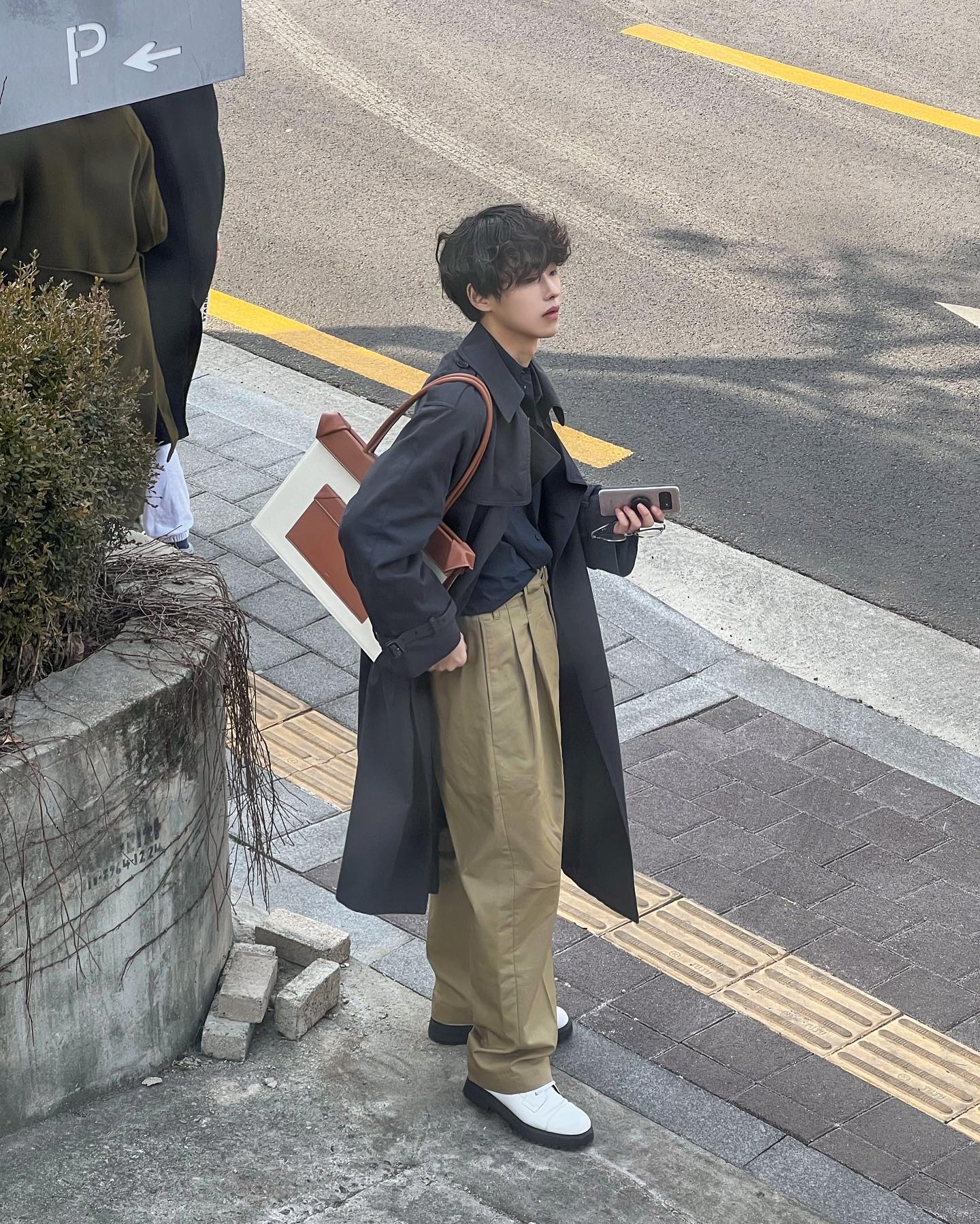 Kim Minjun 則是妥妥的韓系男子一枚,看他的每日穿搭就像是在瀏覽某個韓國服飾品牌的型錄,簡約又有型。雖然沒有令人讚嘆的穿衣技巧,但就是憑著這簡單、俐落又順眼的搭配,創造出了舒心的穿搭風格。