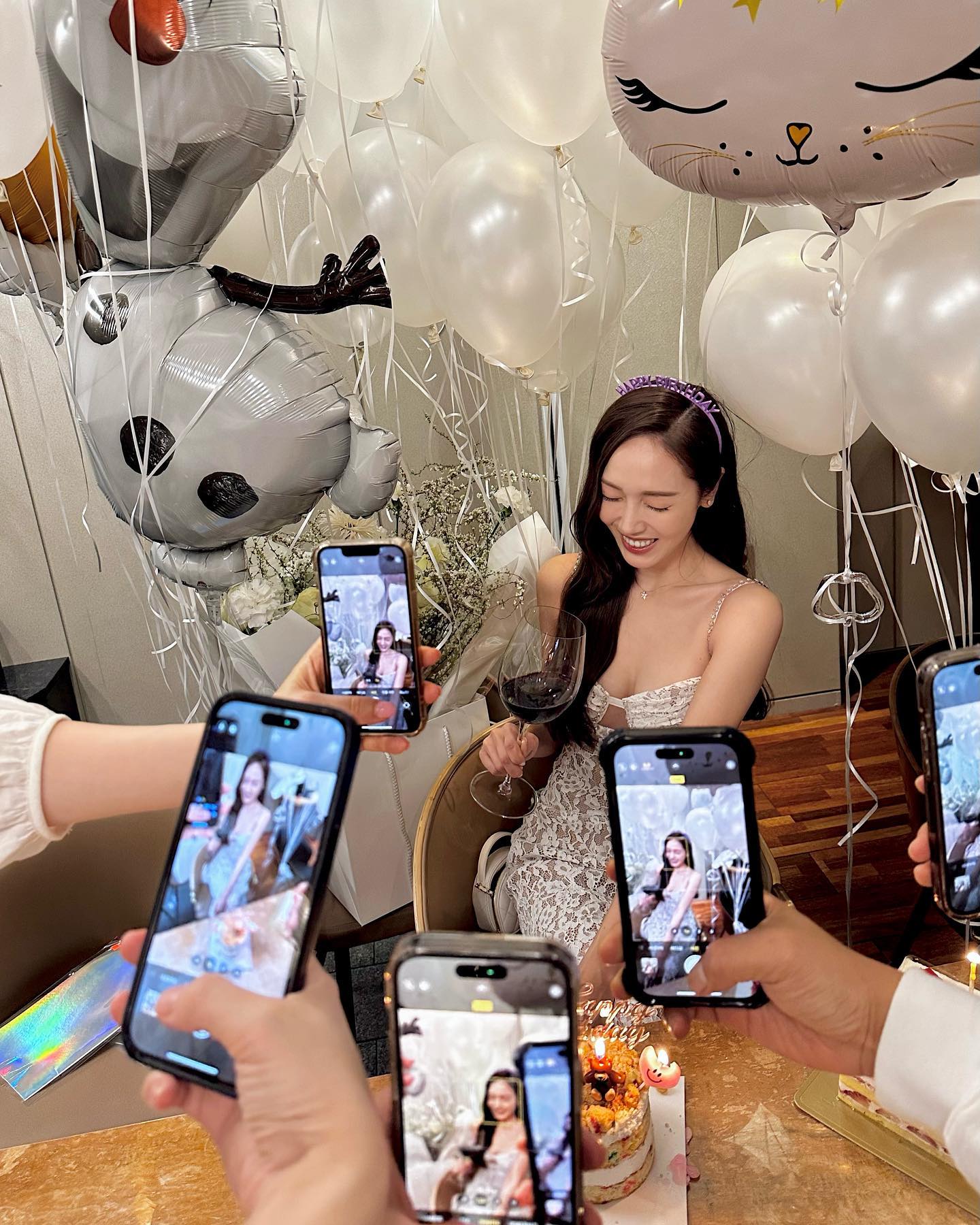 近日,Jessica 鄭秀妍慶祝34歲生日,在社群上分享了生日派對的貼文引來熱烈迴響,和常見的慶生照片不太一樣,照片中除了滿滿的氣球和 Happy Birthday 髮箍以外,還有手拿鏡頭的好幾隻手,特別的拍攝方式讓人眼睛為之一亮,乍看之下還真有藝術雜誌 Toiletpaper 的風格,只不過拿著唇膏的手替換成了手機。
