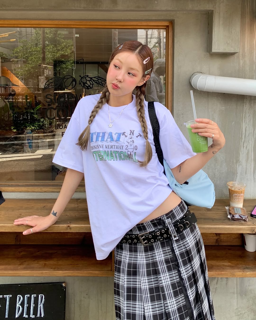 追蹤了韓國女生 @douneo 好一陣子,原先是因為喜歡甜辣穿搭而入坑,最近發現她的編髮也好好看,和穿搭一樣,幾乎每天都能變換出新花樣,剛好可以拿來當作 Y2K 綁髮的教科書。