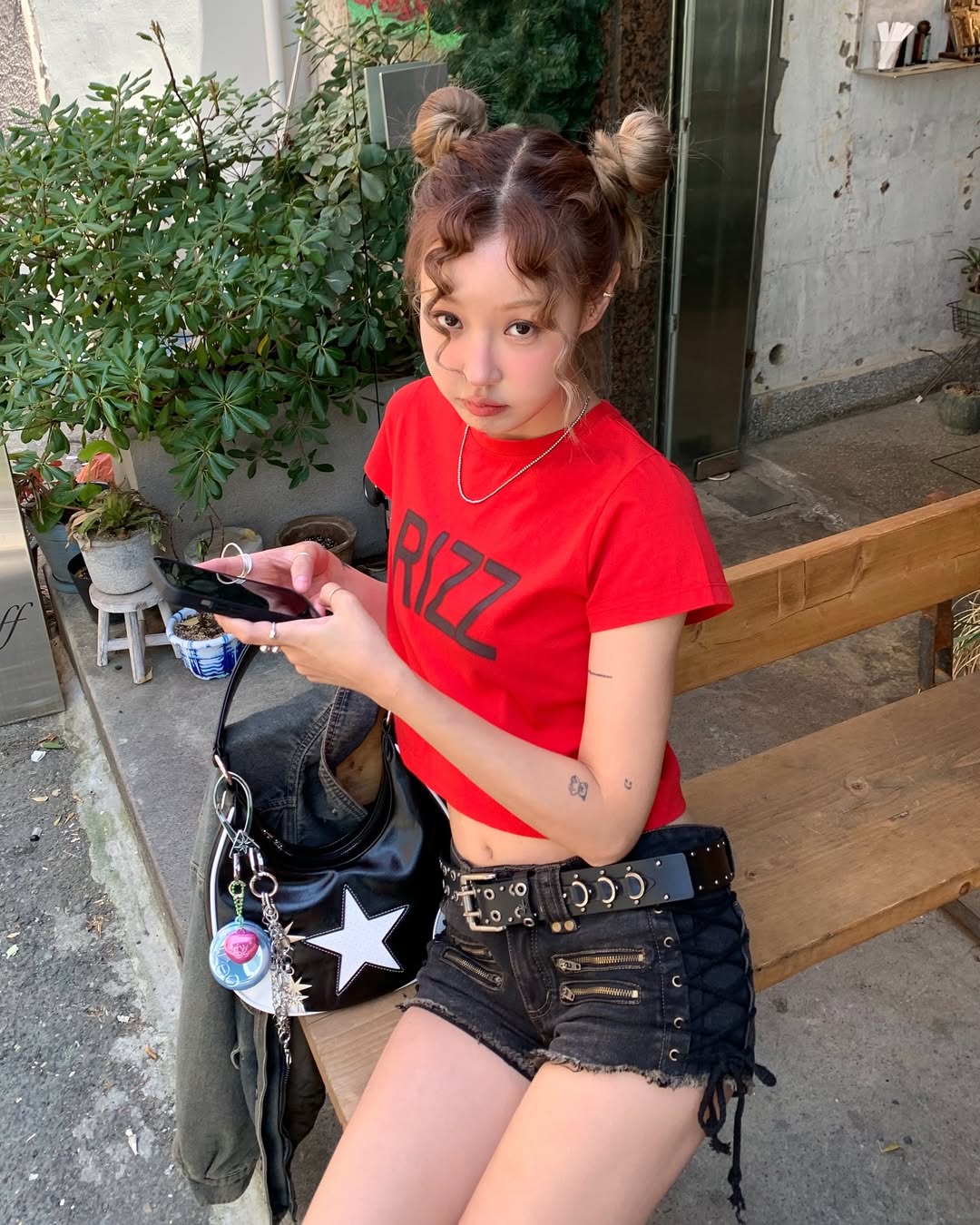 同理可證,半扎馬尾、公主頭這一類的也不用太乖巧,瞧瞧 @douneo 的示範,是不是隨手一綁就很有 Y2K 辣妹的率性態度呢。