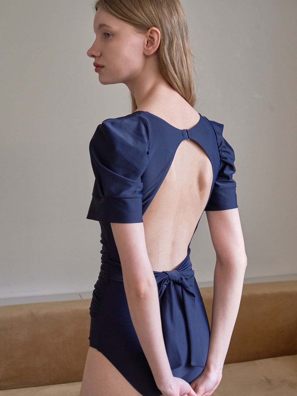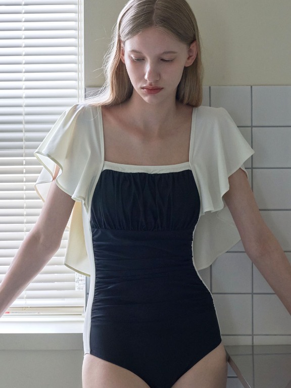 Saint Luxure 的泳衣風格相當清新浪漫,清一色幾乎都是連身款,有著極具少女感的荷葉袖、公主袖、胸前皺摺,轉過身後的挖背交叉設計也相當好看,搭配莫迪藍色系顯得低調又有質感。