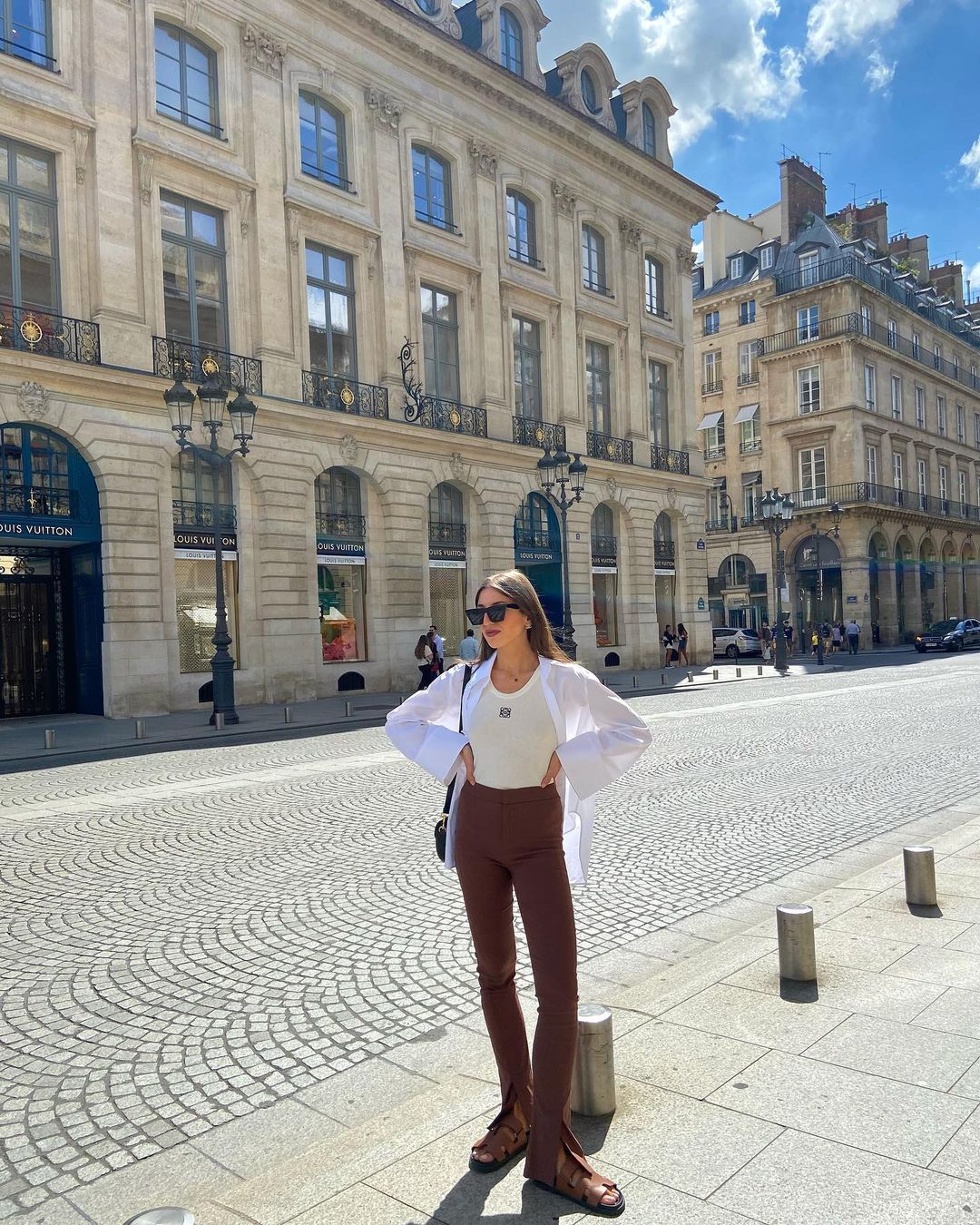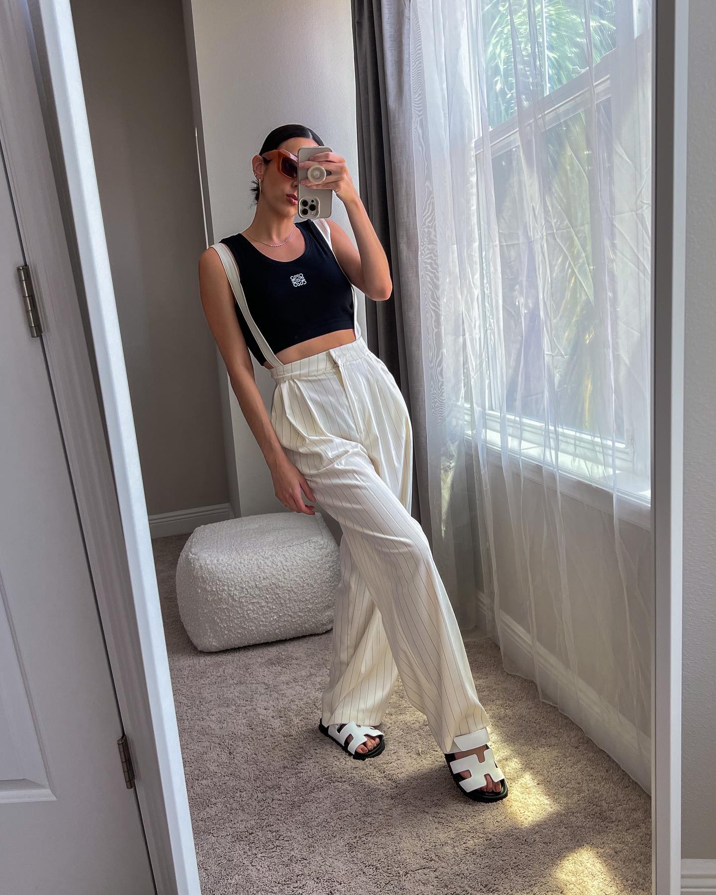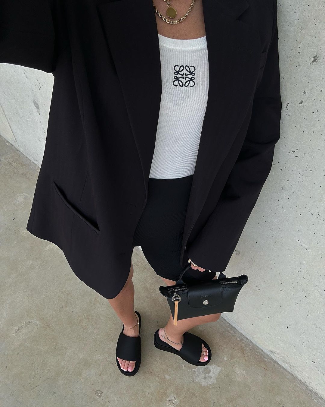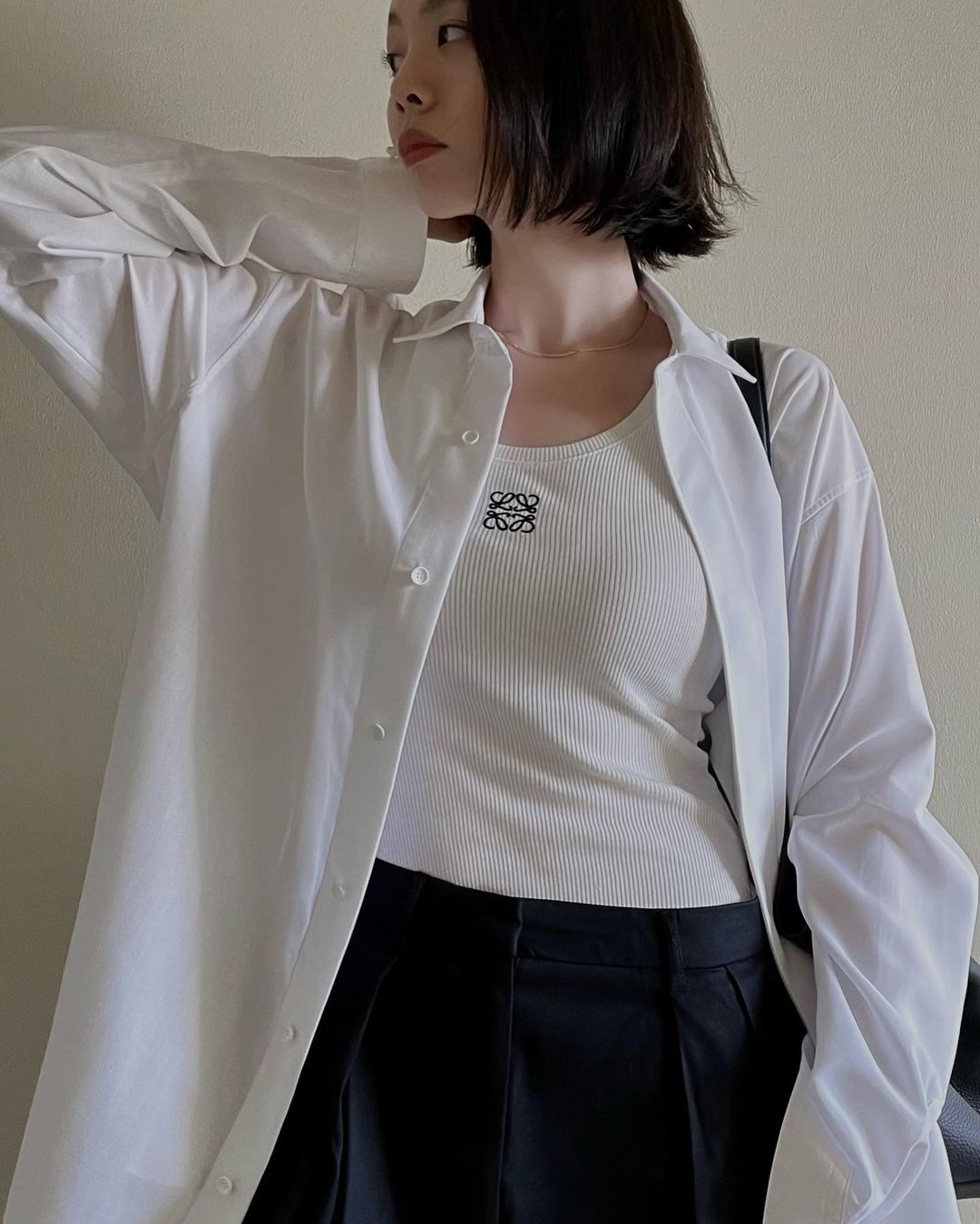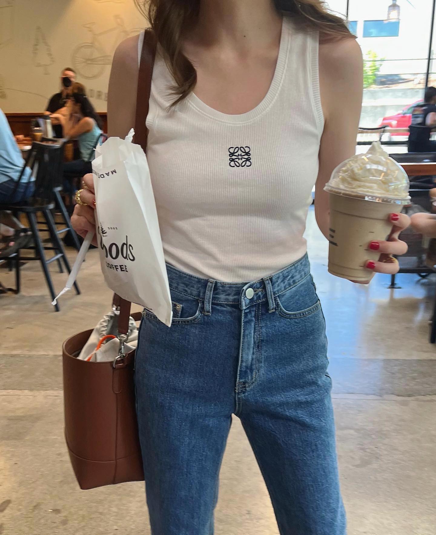 這兩年吹起了一股背心時尚,又以白色坦克背心特別受到歡迎,根據 Lyst Index 公佈的最新排行榜,2023 第二季度 LOEWE 成為 Lyst 最熱門品牌,其中 Kylie Jenner 曾穿過的 Anagram 背心正是最搶手的單品,翻了翻穿搭人士們的頁面,果然看到好多它的身影。