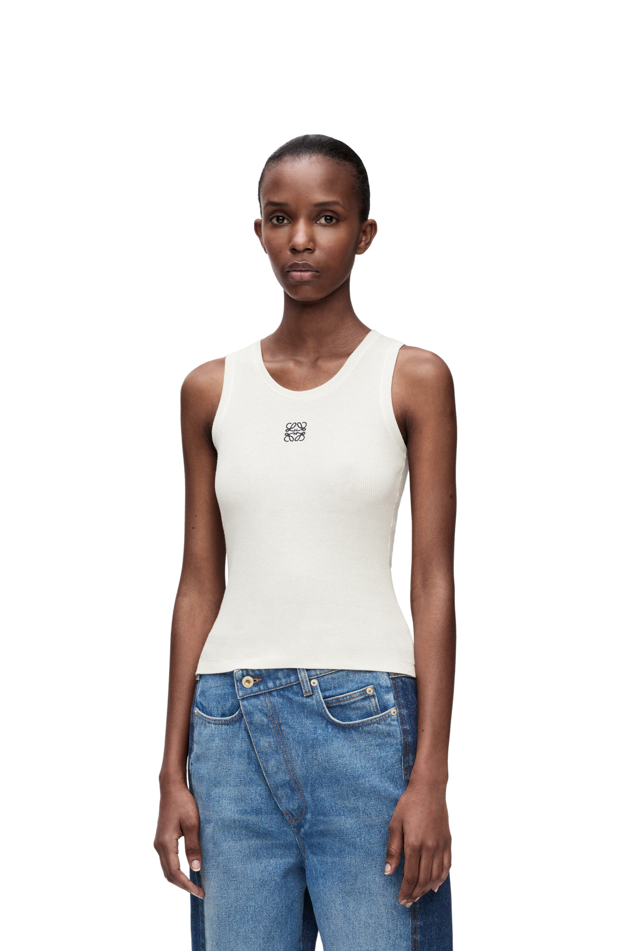 LOEWE 的 Anagram 背心有一般長度,也有推出短版,剛好可以趕搭上夏日的炫肌風潮,除了最熱門的白色,其餘黑、灰、藍色也有不少人在穿。