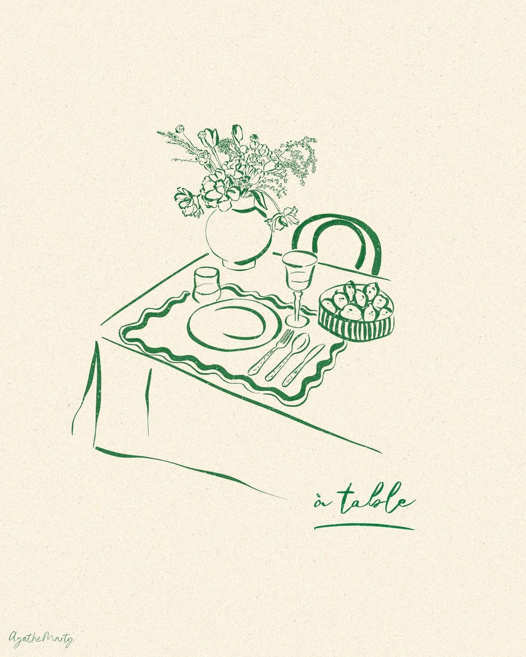 Agathe Marty 除了是一名插畫家外,同時也是視覺設計師及攝影師,她以簡約筆觸作為個人標誌性風格,並將主題聚焦於靜物及女性,以及足以表現日常美好的簡單事物,旨在令觀者看見她獨具個人特色的極簡風格。