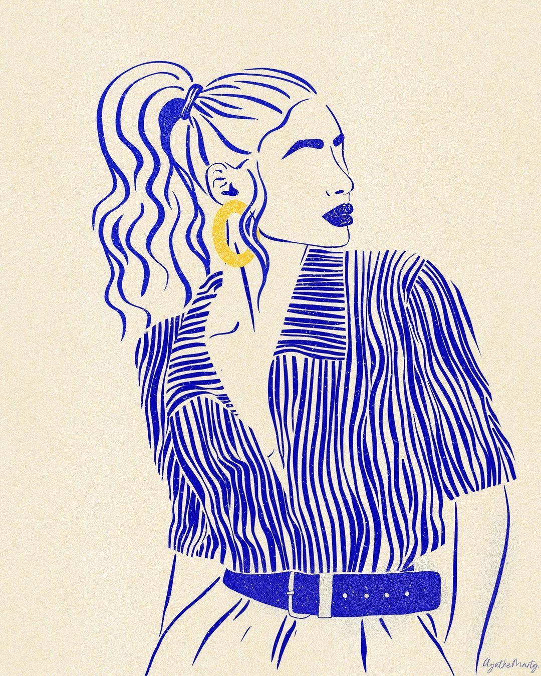 在單純的單色背景中,Agathe Marty 擅長透過充滿律動感的線條,簡單幾筆就完美形塑了畫中人物的風格與特色。