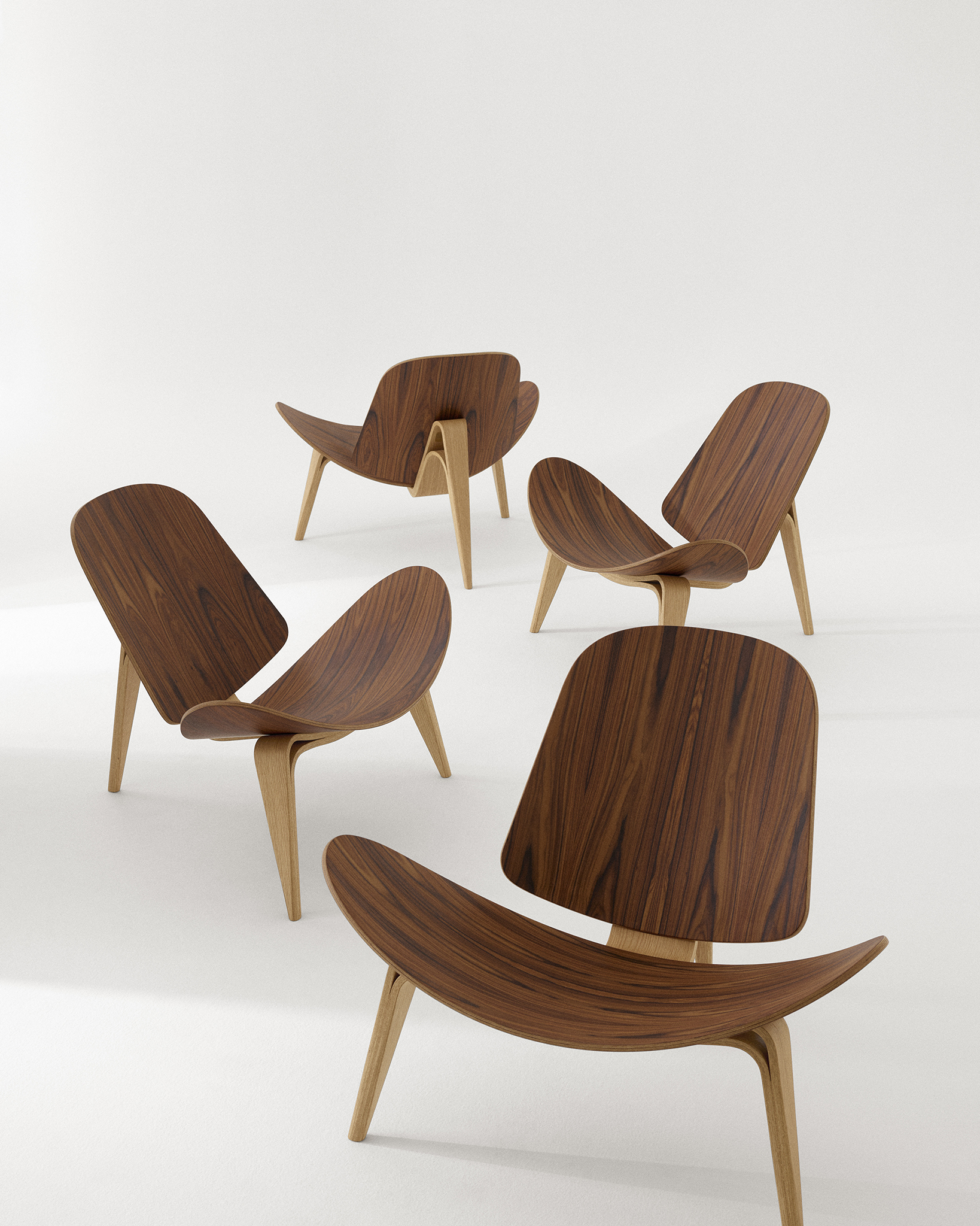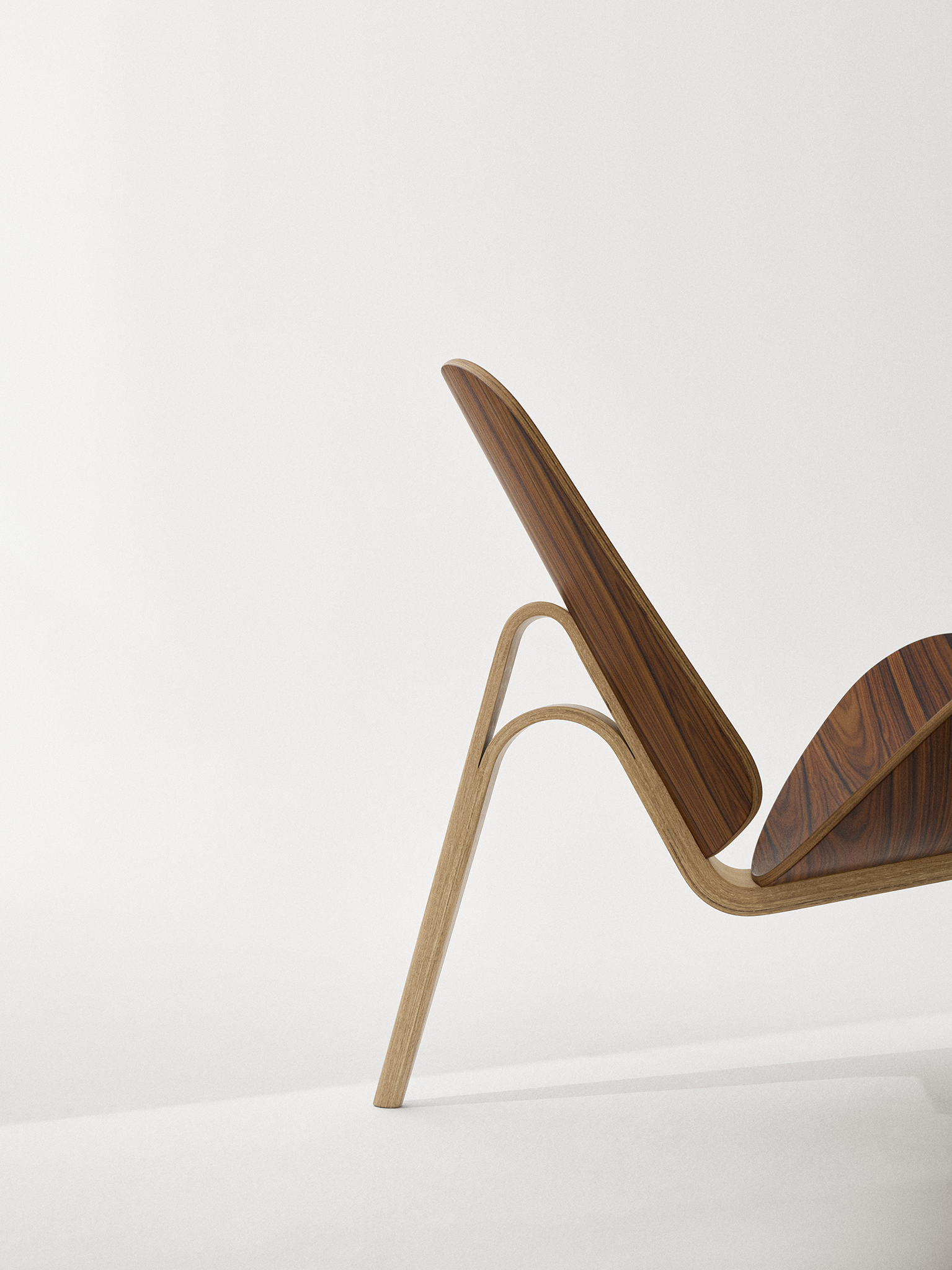 1963 年,丹麥家具設計師 Hans J. Wegner 於丹麥哥本哈根家具展首度發表名為“CH07.Shell Chair”的設計,不過因製作工藝極度困難,因此僅生產幾件後,該產品就沉埋於圖紙中 35 年;直到 1998 年,Carl Hansen & Søn 在克服重重難關後重新發表,不僅完美呈獻大師 Wegner 的不凡設計,推出後立刻風靡當時的家具設計界,成為家具迷心中的夢幻逸品。