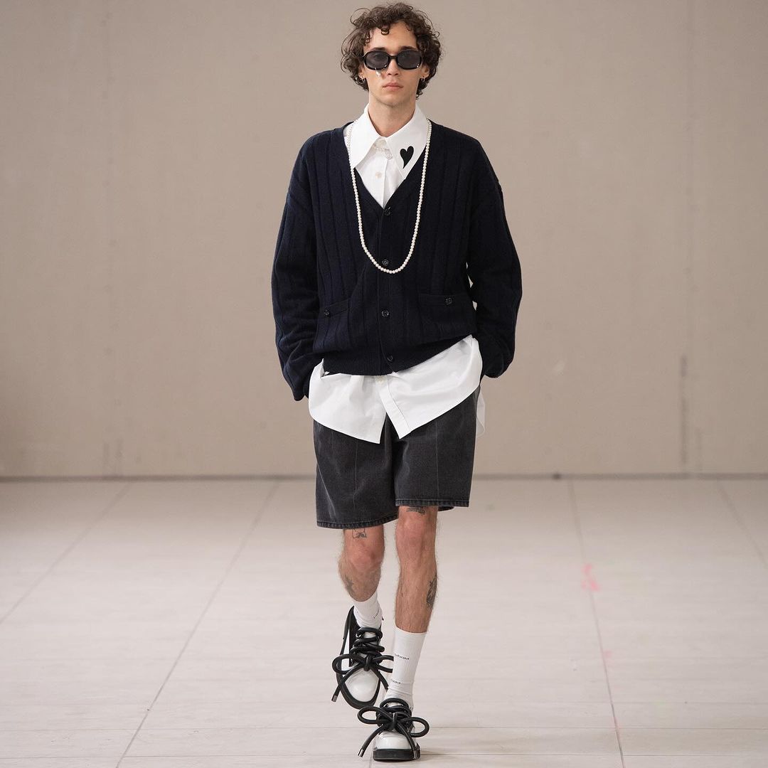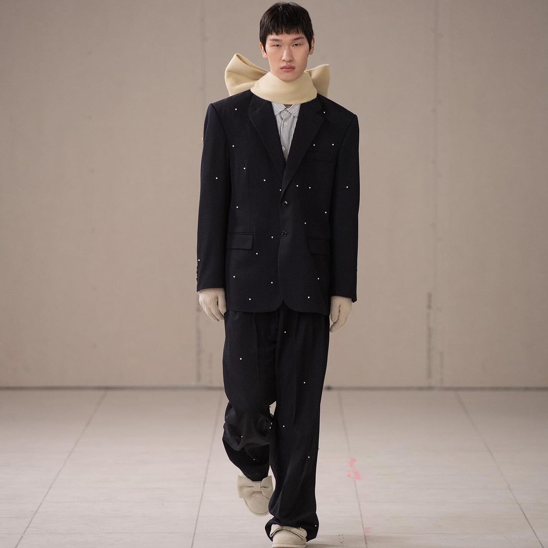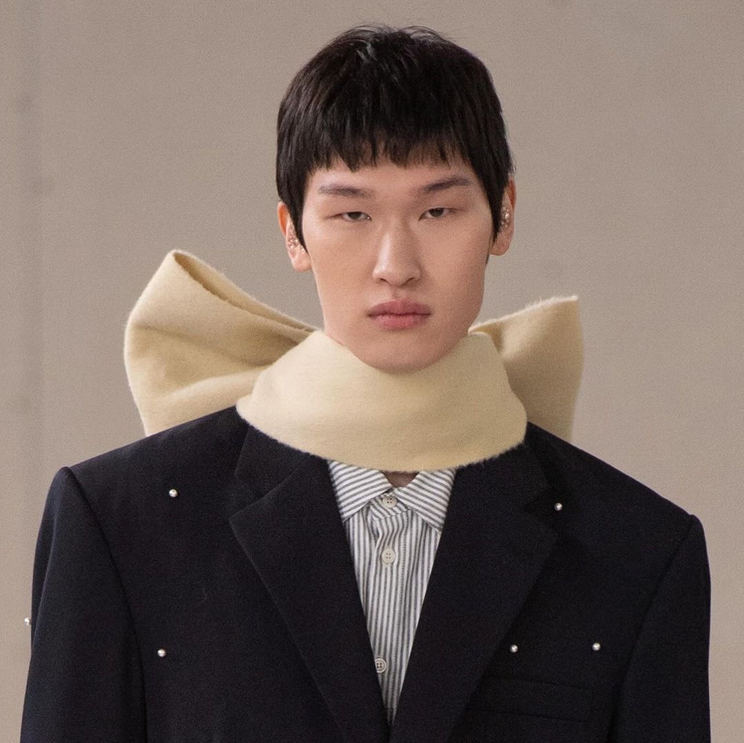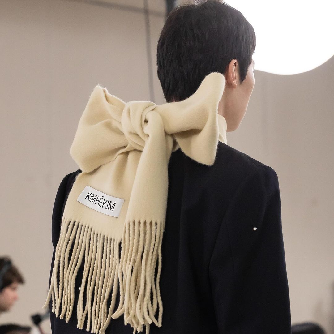來到”Puzzle”最後一層寓意,KIMHĒKIM 超越了性別界線,將對性別的包容性視為本系列核心,透過擴展的男裝線、大量賦予的蝴蝶結點綴,以及攜手 ASICS 聯名的運動鞋,強調創新敘事的雛形。