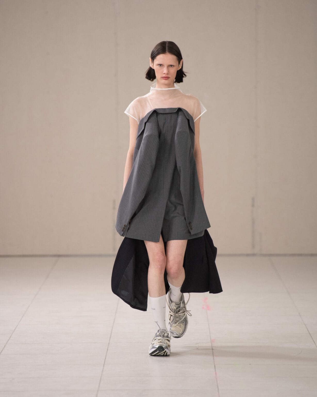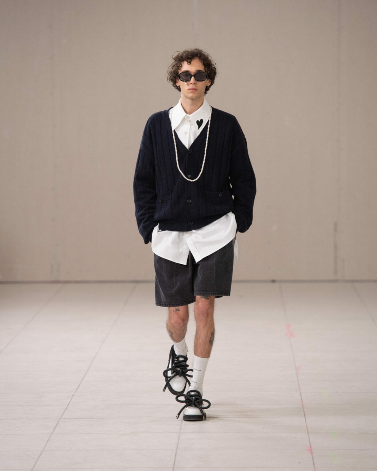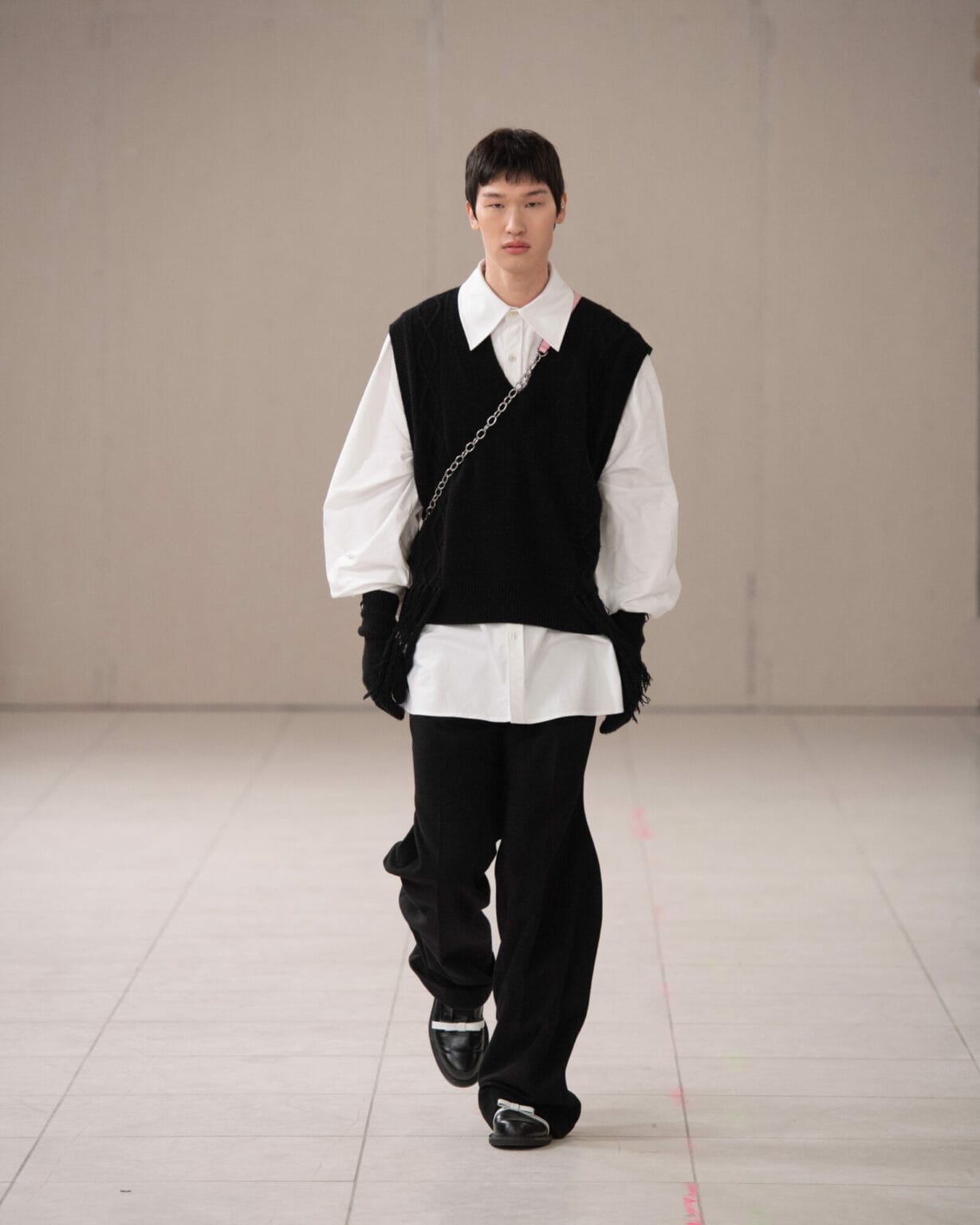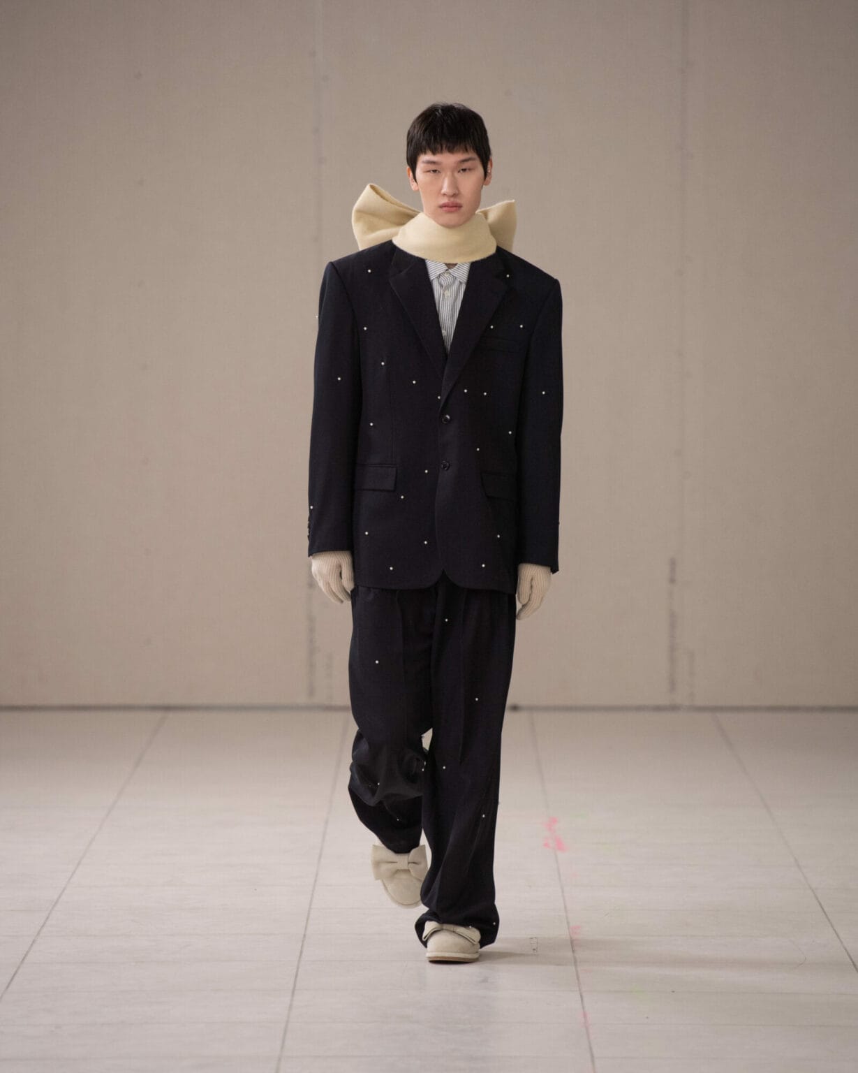 來到”Puzzle”最後一層寓意,KIMHĒKIM 超越了性別界線,將對性別的包容性視為本系列核心,透過擴展的男裝線、大量賦予的蝴蝶結點綴,以及攜手 ASICS 聯名的運動鞋,強調創新敘事的雛形。
