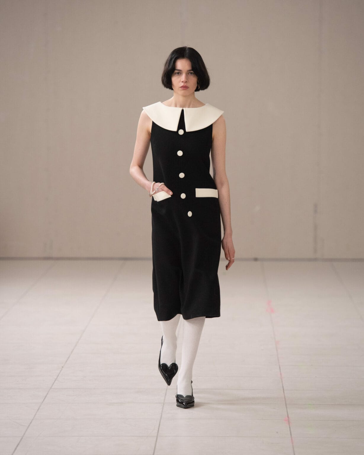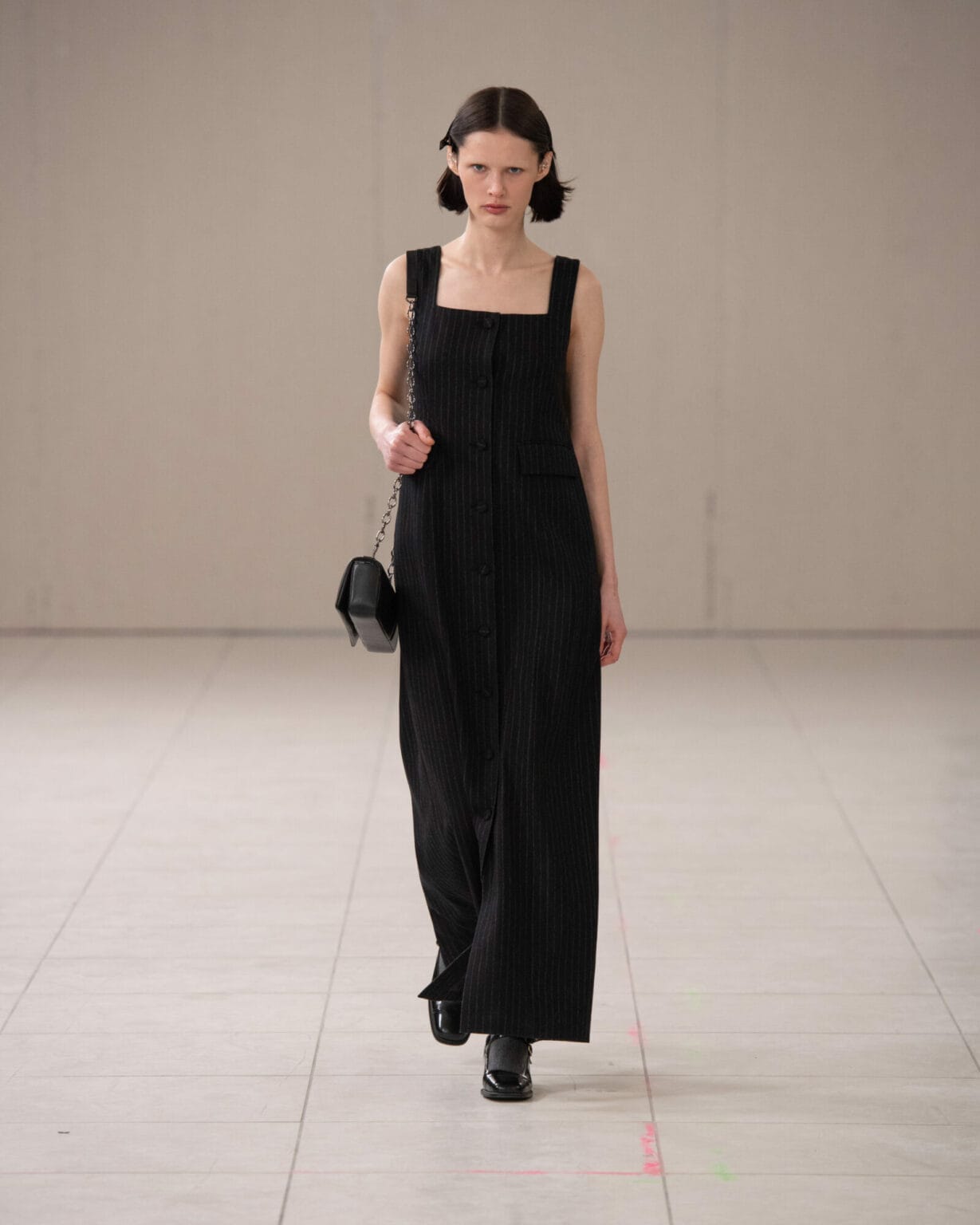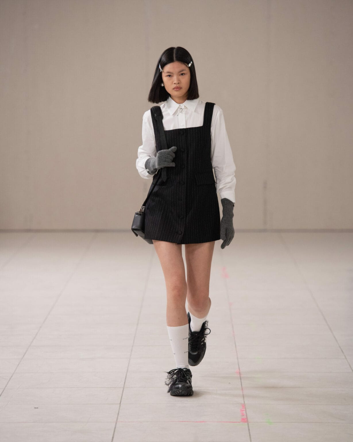 借鑒俄羅斯方塊的童年趣味,以及首爾箱包研究所中工匠的巧緻工藝,今回的 Heart Bag、Carré Bag 和 Dot Bag 也成為懷舊的具體體現,每件作品都證明了品牌對首爾手袋的細緻考究,而將西裝外套或風衣解構為下擺或裙子,以及將褲頭轉化為上衣等的顛覆設計,也一如拼圖般重新翻轉了時尚的既定觀念。