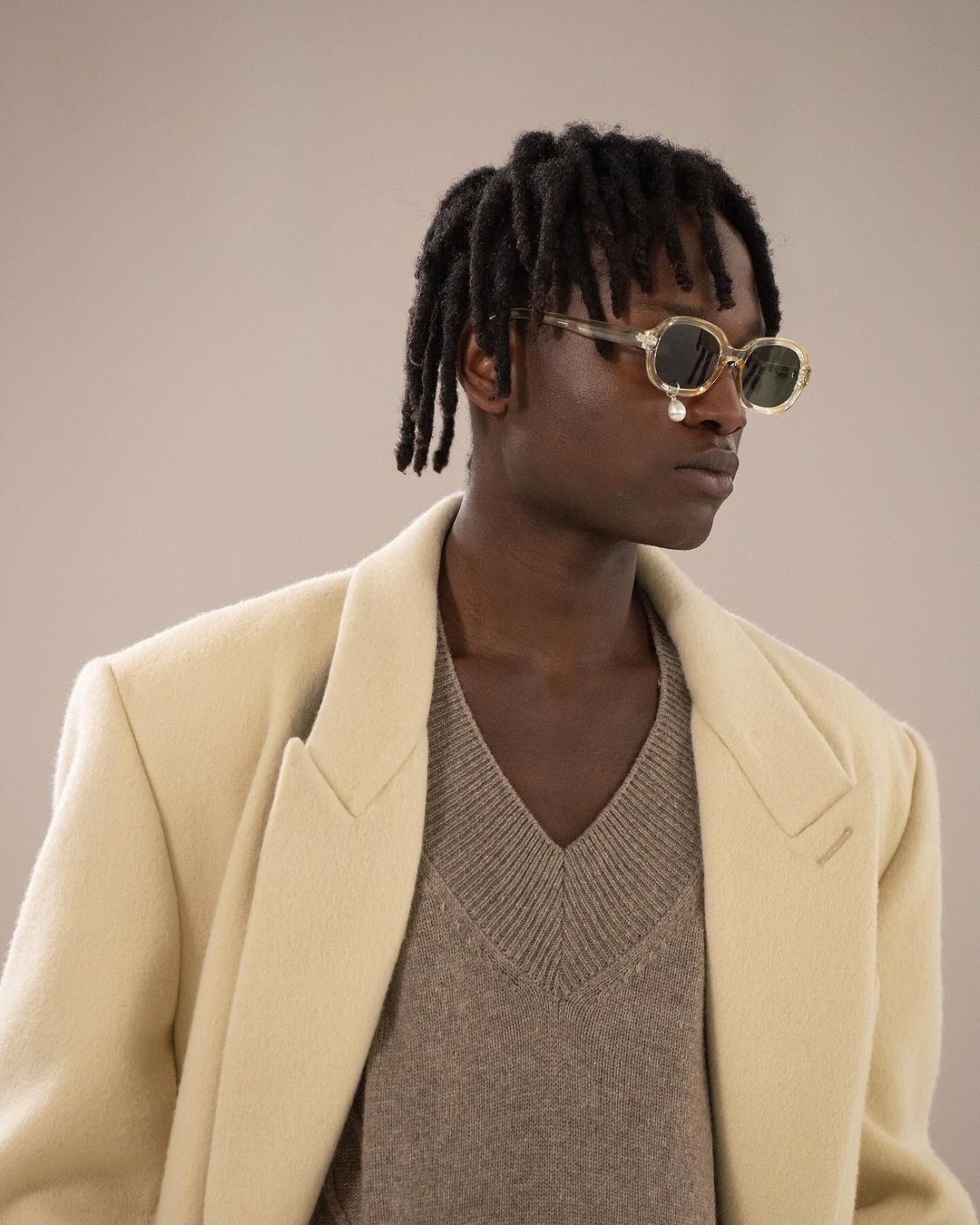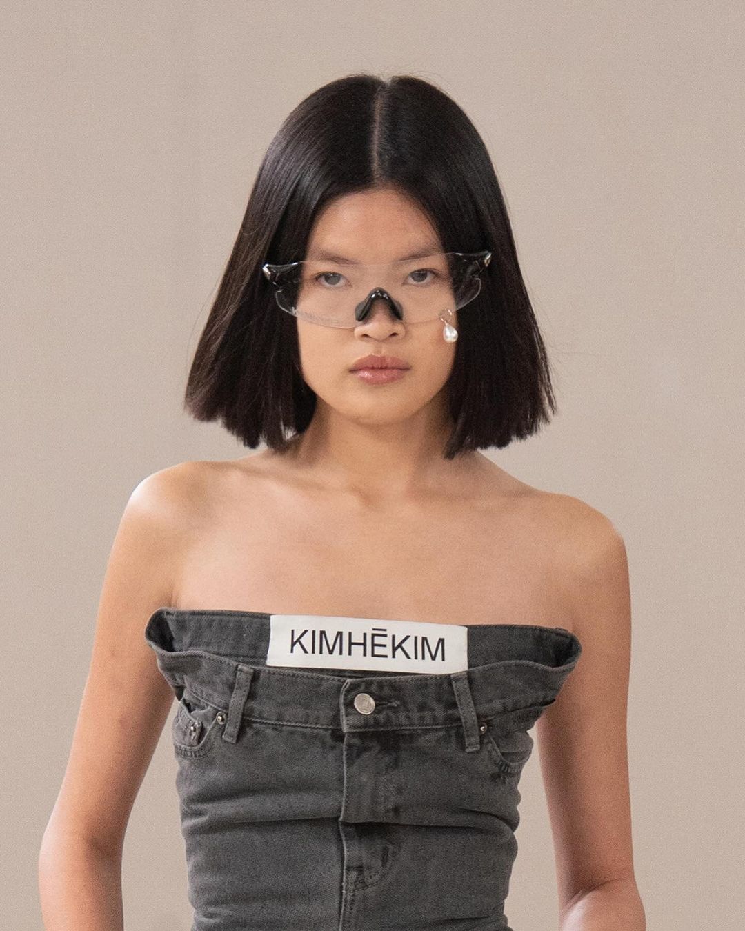 根植於浪漫與革命性願景的 KIMHĒKIM,本次深入首爾復古市場,提出了一系列與該城市豐富時尚遺產相互呼應的美學概念,從而將升級再造的寶石融入敘事語境中、將彷彿雕刻般硬挺的夾克及西裝、品牌標誌性的珍珠淚滴墨鏡及超現實鞋履幻化為故事中的一部分,重新定義了何為「當代永恆」的精髓。