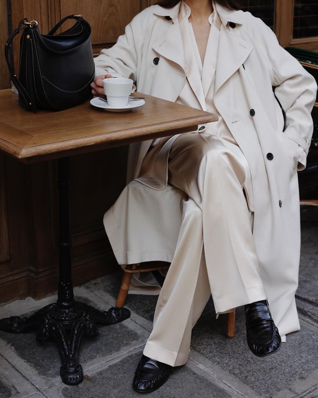 翻閱了那麼多穿搭帳號,發現出鏡率最高的奶油色單品就是西裝外套和風衣,剛好這兩件的厚薄度適中,白天正熱的時候掛在手上不是太大負擔,入夜涼了再穿上,拿來抵禦早晚溫差,顏色也是恰恰好的清爽,春天穿再適合不過了。