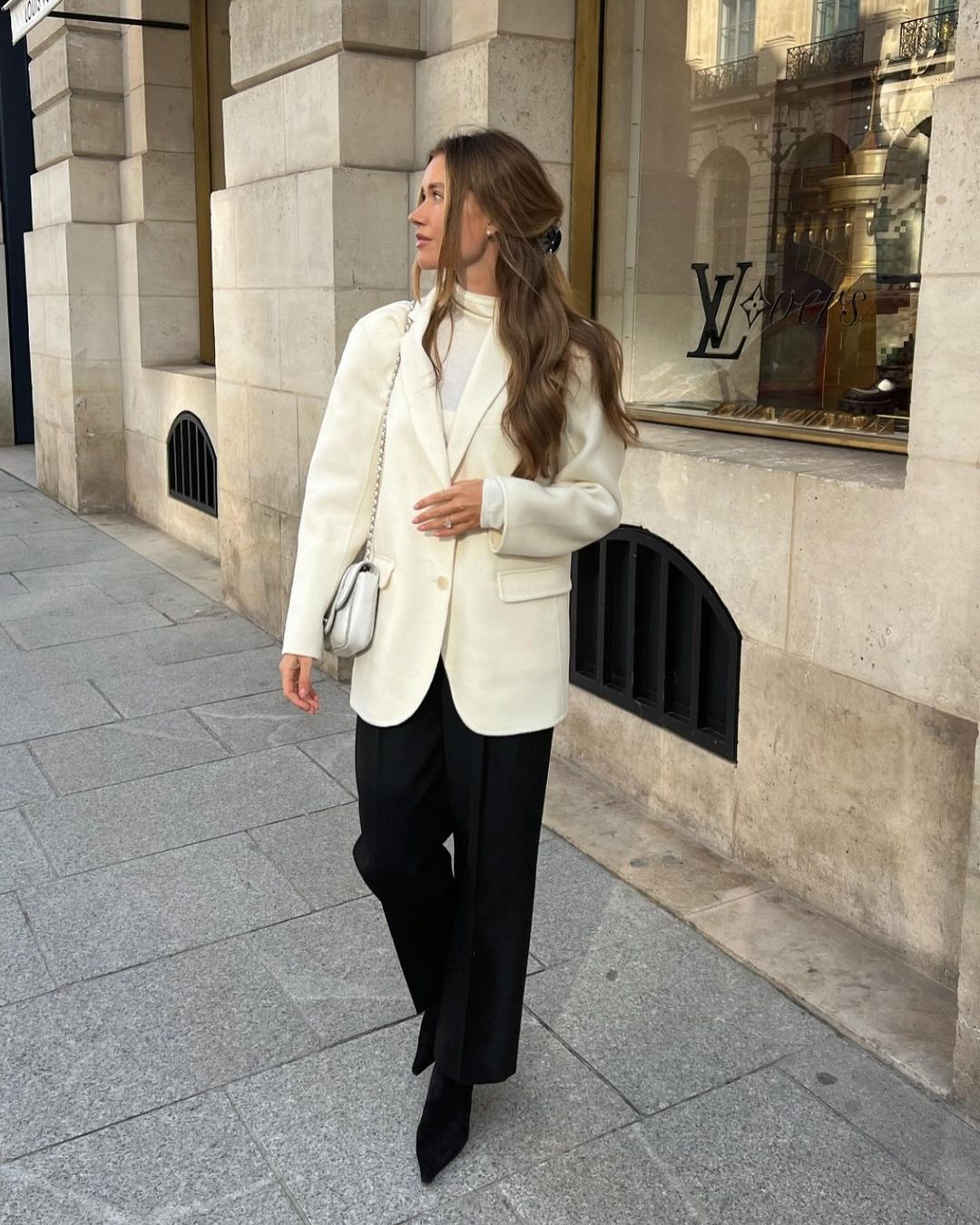 適逢春暖花開的季節,看到許多潮人們脫去秋冬的深棕色,紛紛把「奶油白」單品拿出來穿,還可以和經典的黑白色搭配在一塊,讓造型更溫柔、和諧。