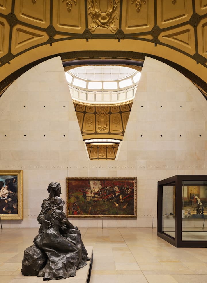 該客房中的「床」恰恰位於最引人注目的鐘面窗台前,這面由玻璃混合鋼製打造而成的窗戶,正是由美術館前身之火車站所保留下的珍藏,賓客可以透過它,欣賞奧運賽事全天候的活動,「我想創造一個既親密又具有紀念意義、歷史悠久又充滿現代美學的空間,因此我晝夜不停地在規劃這整個空間,其中就連拱形天花板的弧度也是隨著手部彎曲的軌跡而誕生的。」