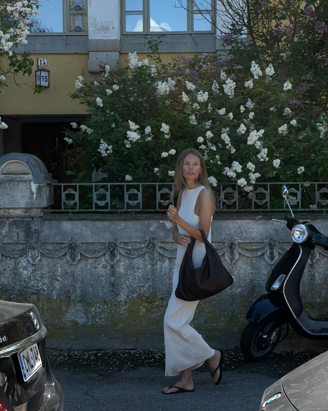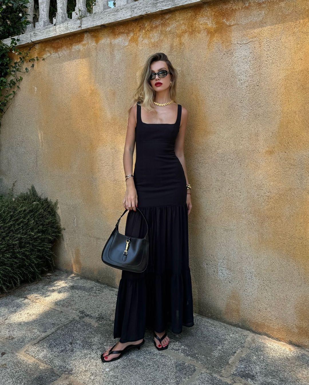 翻開各國穿搭人士的頁面,也發現了不少範本,如果你想要穿出高個、長腿以及腰臀好比例的話,最推薦從「超長洋裝」入手,長度落在腳踝處,加上合身的剪裁,走起路來自然呈現婀娜多姿的模樣,就算是搭休閒夾腳拖也很有度假慵懶的風情。