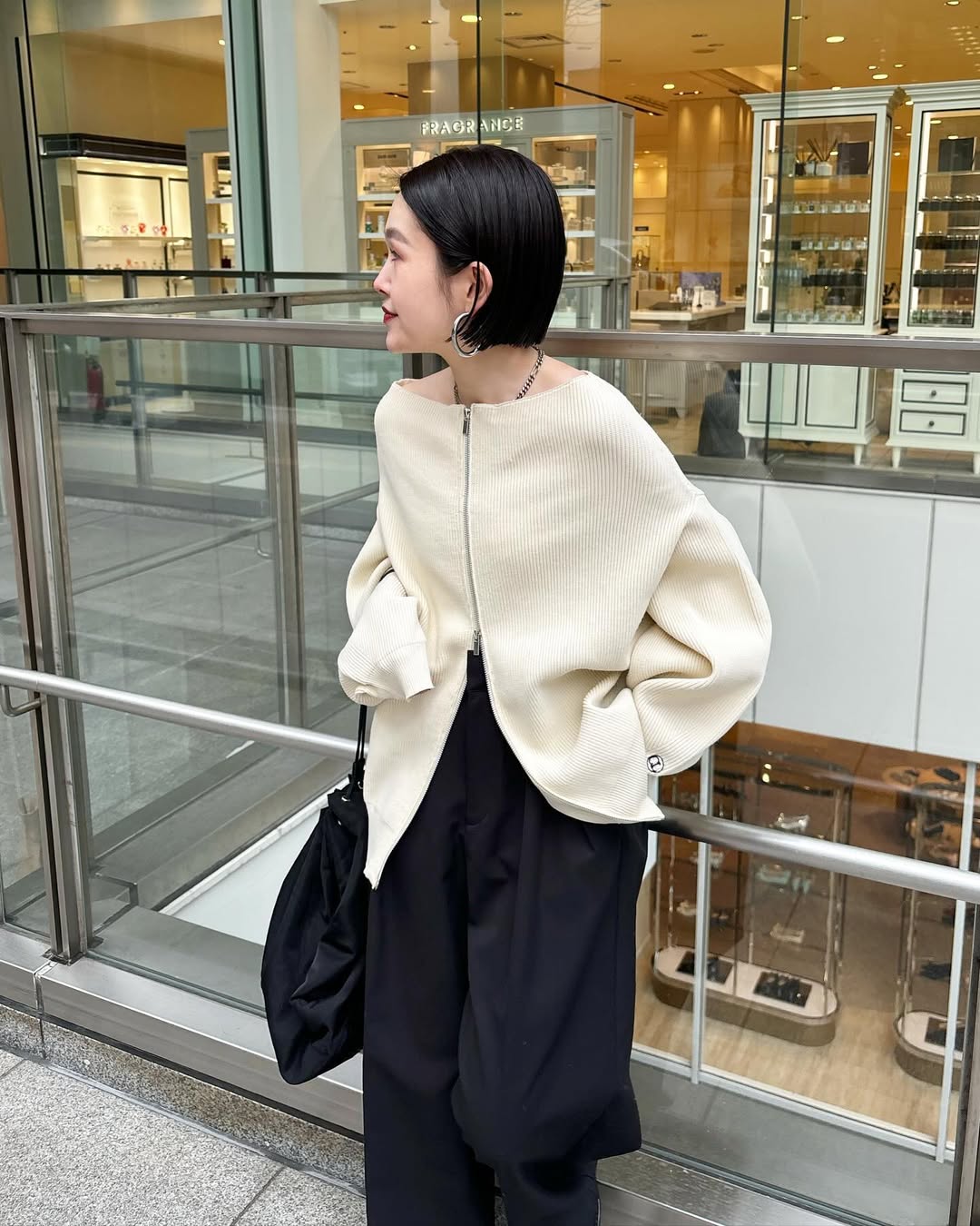 最後一位是服飾店店員 otani,她留著一頭深色鮑伯短髮,最常穿的單品幾乎都是黑與白,和上面兩位相比,她的穿搭風格更休閒、中性,有時像個小男孩一樣酷帥,有時又很有都會女子的高級時髦氣息。