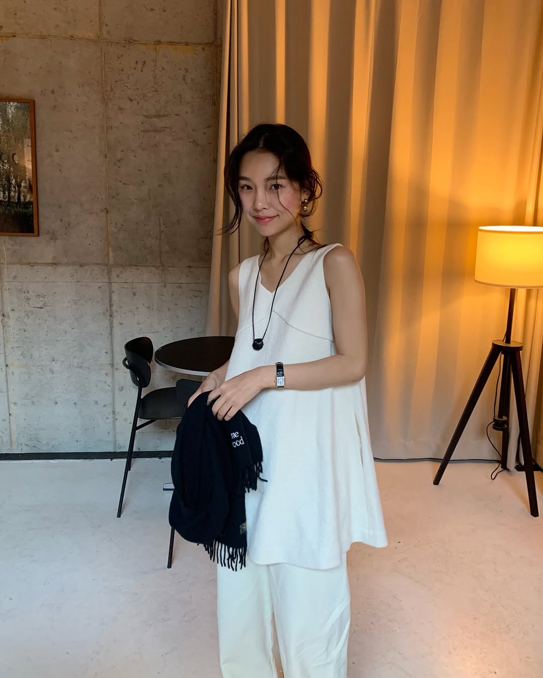她留著一頭蓬鬆微捲的長髮,總是穿著簡單的基礎款,諸如西裝外套、襯衫、牛仔褲、素色針織衫等,卻又能將這些常見的單品搭配得宜,穿出簡約知性的輕熟氣質,就像鄰家溫柔的大姊姊那樣,時髦精緻,又不會給人距離感。