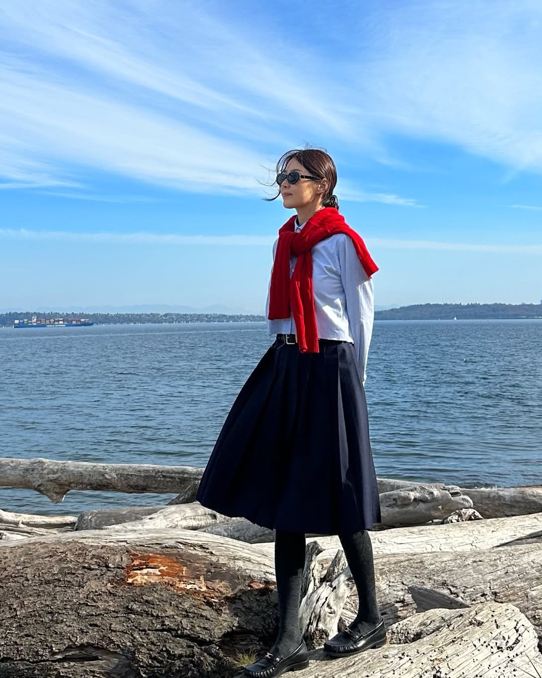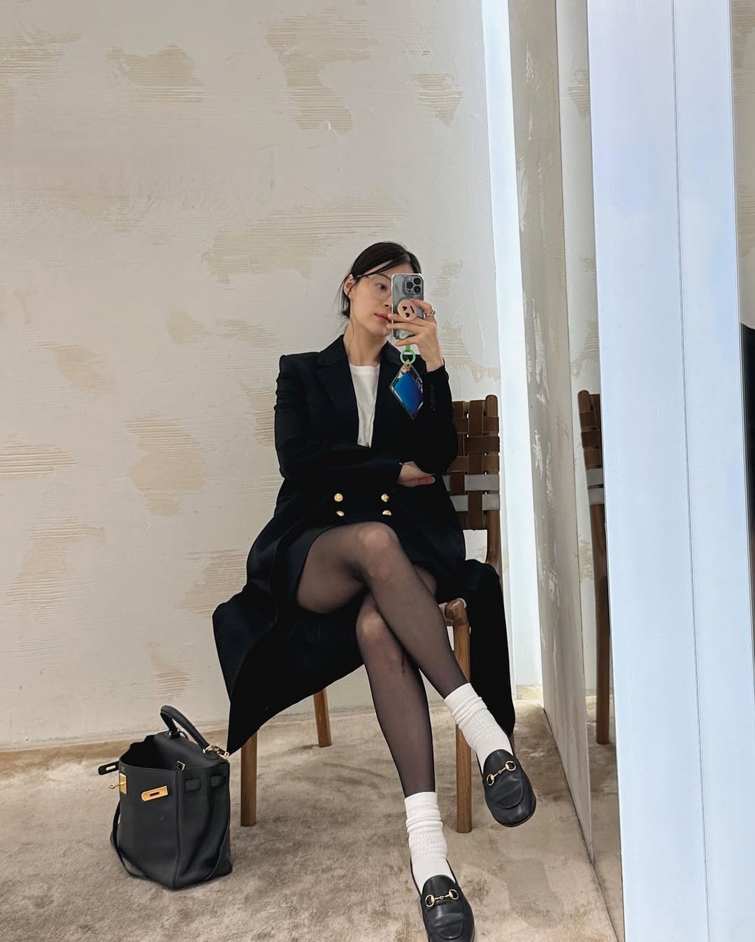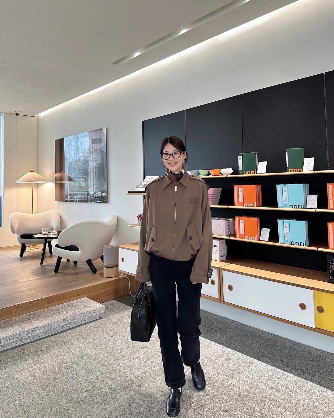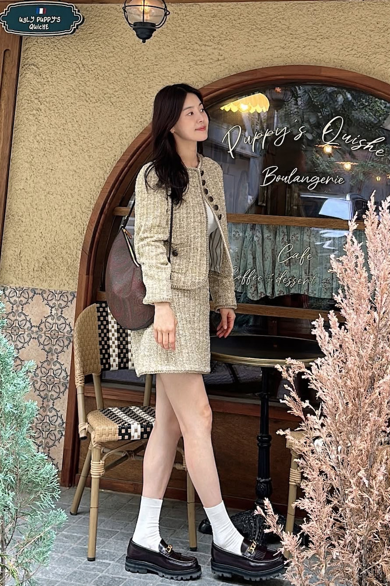 編輯私心最愛她那種帶著典雅氣質的穿搭風格,看她所分享過貼文,其中不乏發現美術館或咖啡廳的照片,她的穿搭也恰好與這樣的氛圍相得益彰,諸如短版無領外套、白襯衫、帶有腰身的長洋裝,簡約大方,卻又充滿文藝氣息。