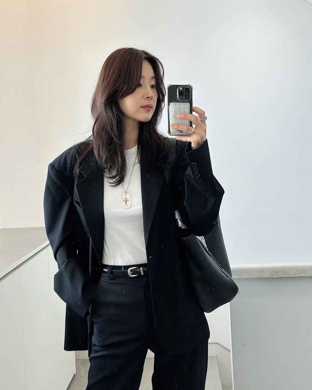 瀏覽了她的社群頁面,發現西裝外套的出鏡率可真高,只需要內搭一件合身上衣,下身來一件長褲,紮進去穿就簡約俐落得很帥氣,怕太正式可以將西裝褲改成牛仔褲,腳踩雙球鞋就很率性好看。