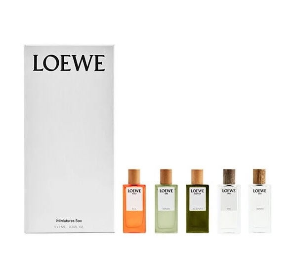 因為新香水而在官網發現 2 款迷你試用套裝,小容量搭配多款香氣,不只能自己用也很適合拿來送禮。這款迷你版香水組合包括五支 7 毫升裝小瓶香水:LOEWE Esencia EDP、LOEWE Aire Sutileza、LOEWE Solo Ella EDP、LOEWE 001 Man EDP 和 LOEWE 001 Woman EDP。