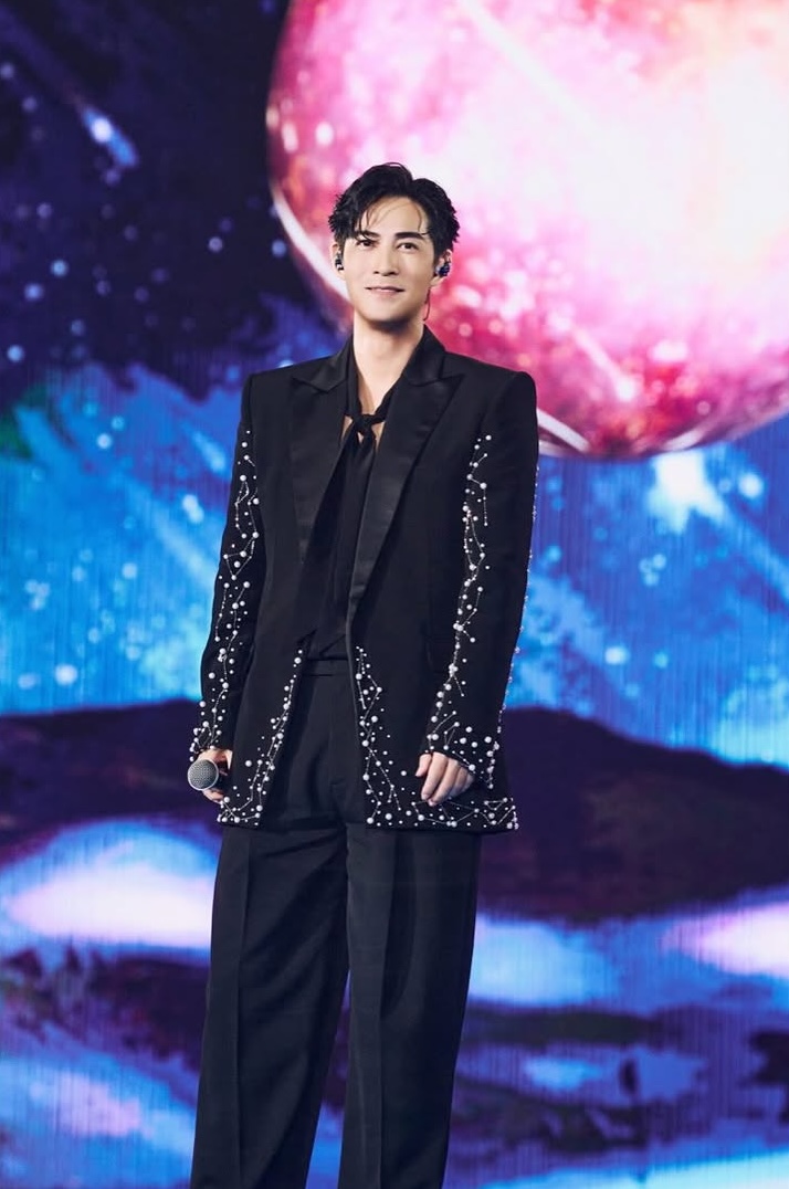 周渝民身穿 BALMAIN 2025 春夏系列的星辰水鑽珍珠刺繡西裝外套,展現優雅成熟魅力;言承旭則以 BALMAIN 早秋系列黑色花呢絨面拼接夾克和直筒羊毛西装褲,搭配 白色 V 領上衣,並佩戴 Tiffany & Co. 經典珠寶,造型閃耀又不失型格;吳建豪 Vanness 一身山本耀司副牌 Ground Y 登場,身著不對稱西裝搭配拉鍊造型錐形褲,造型俐落帥氣;朱孝天則身穿棕色西裝內搭黑色襯衫。