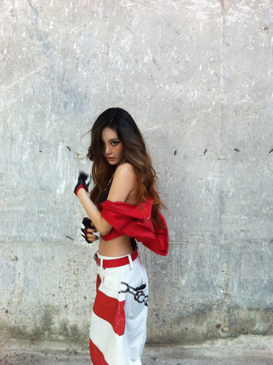 還以為 Ningning 的布丁染只是個特例,沒想到 Red Velvet 的 Joy 在最新照片中也是類似的「褪色造型」。Joy 的髮色較深,是自然的茶棕色,不過同樣可以看出頭頂已經長出新的黑色,和下面的髮絲形成了對比。