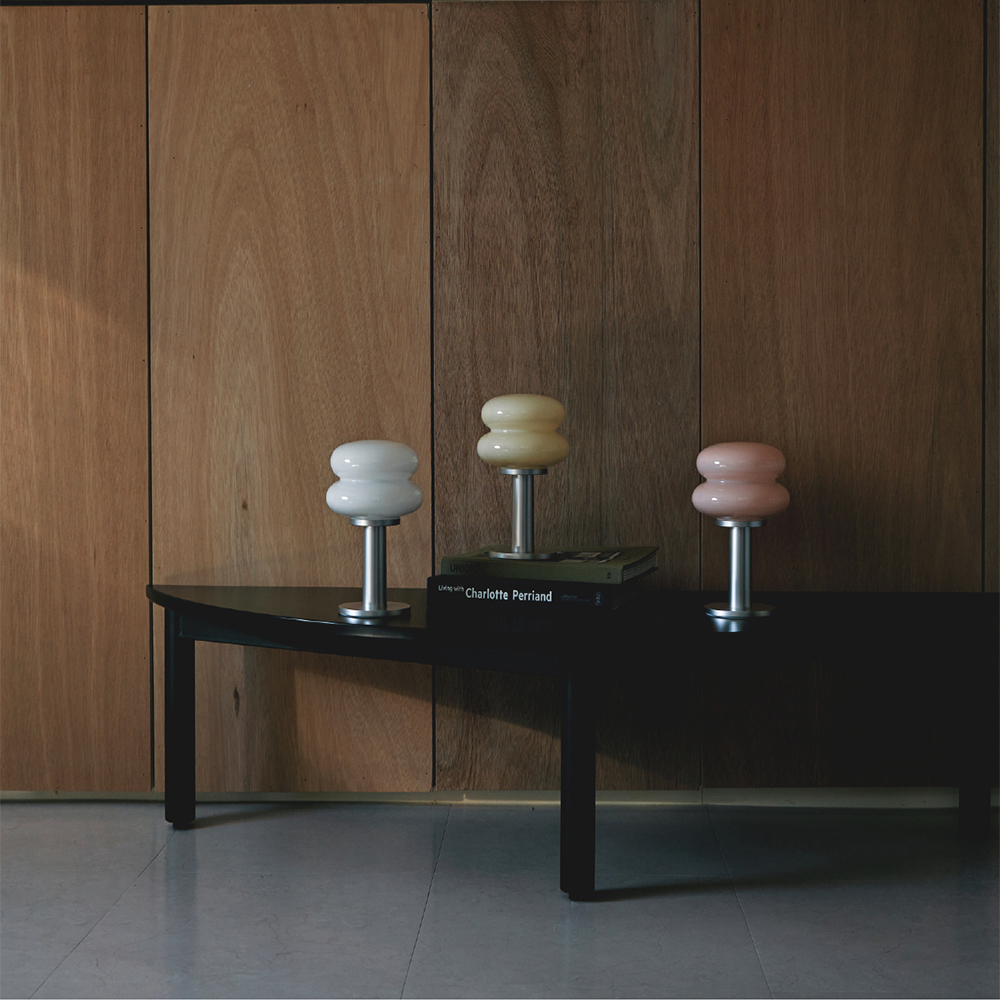 SNOWMAN 系列陸續推出不同尺寸,包含桌燈、落地燈、吊燈、充電式燈款,以及不同材質和新配色。像是限定的太妃糖版本燈罩,透出的光線就像太妃糖紋理,讓人一眼就愛上。
