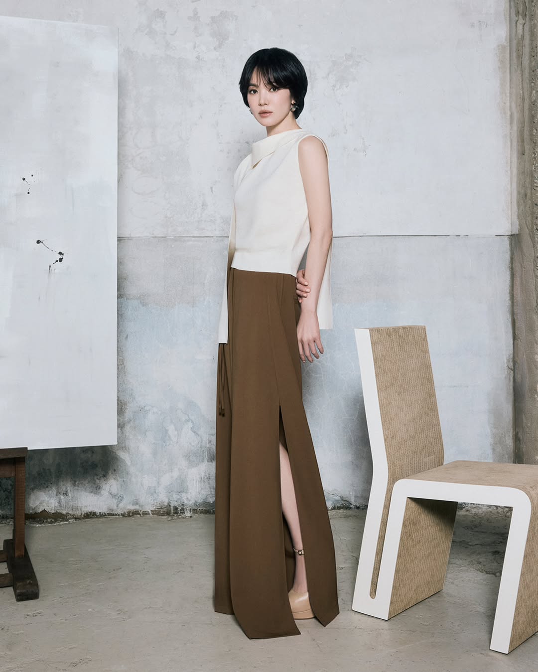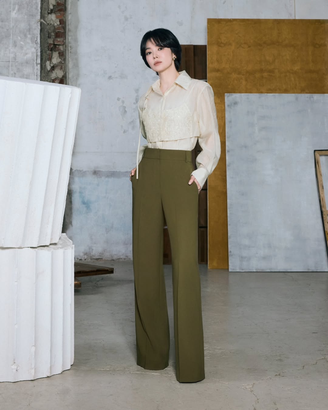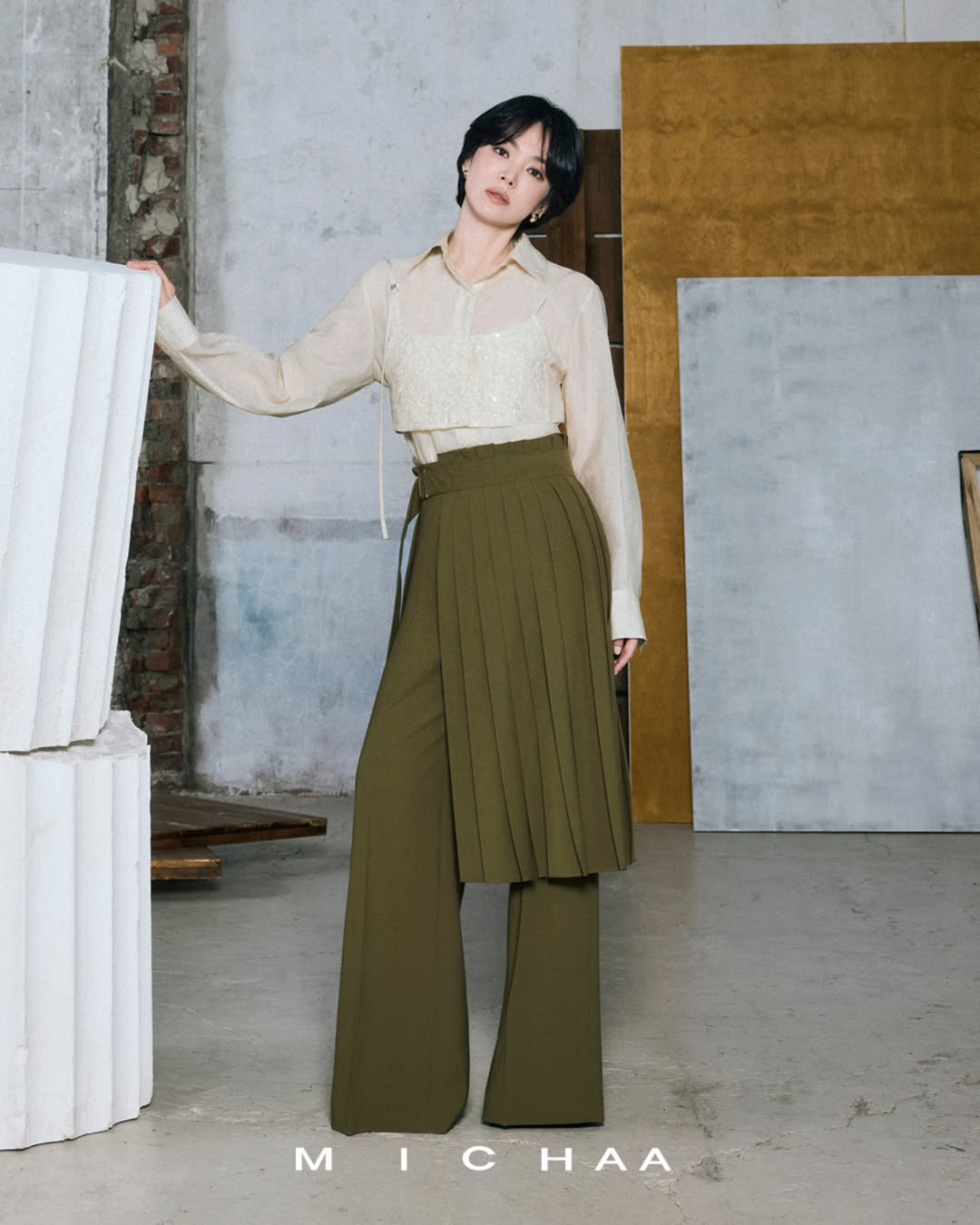 如果還看不過癮,韓國服飾品牌 MICHAA 最近也釋出了早秋形象廣告,同樣邀請到代言人宋慧喬親自出鏡,也以同樣帥氣的造型亮相。