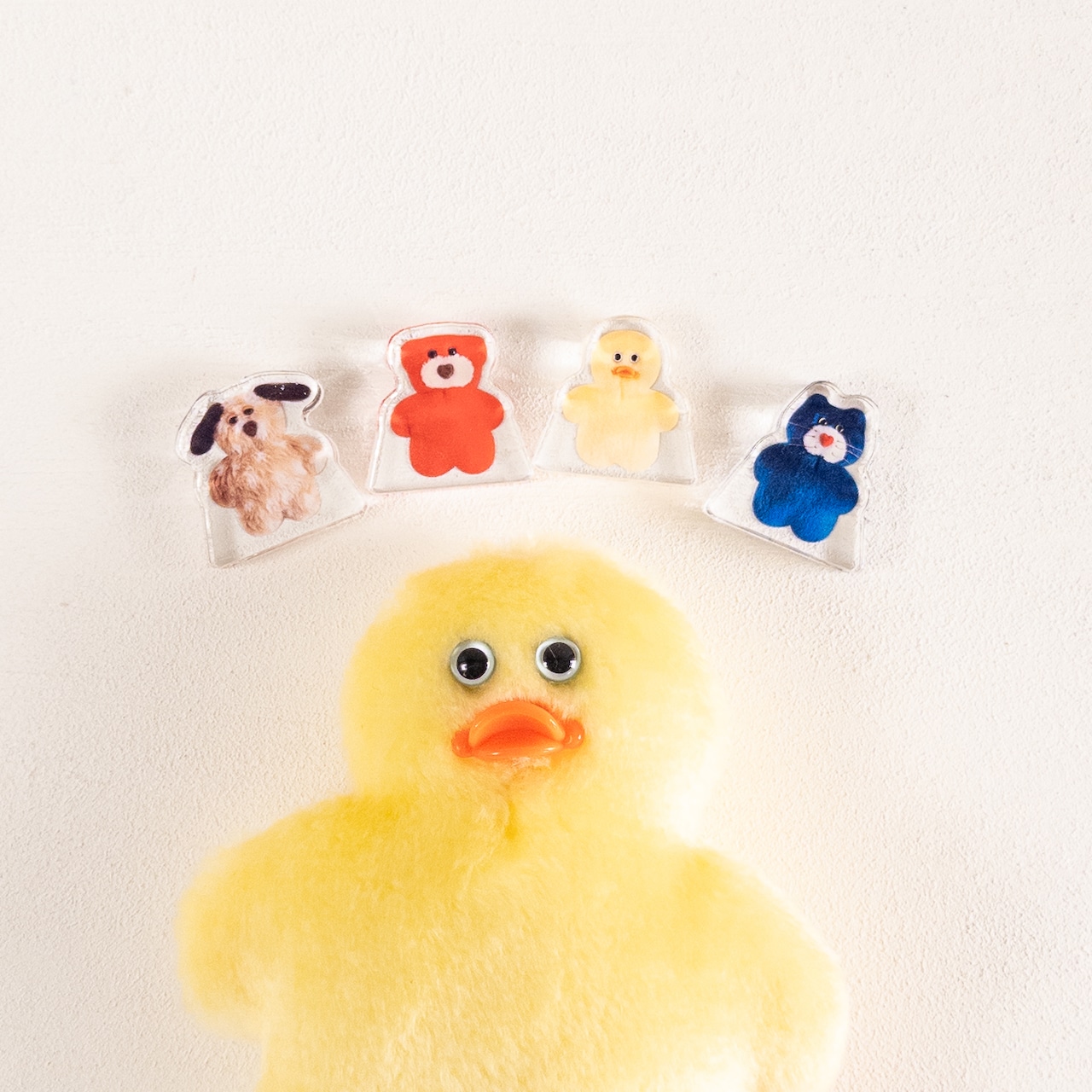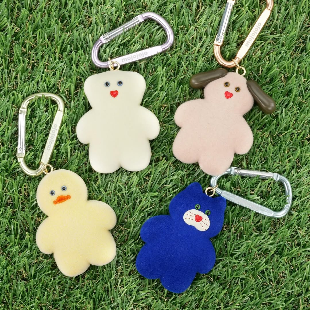 2024 年,Mojojojo 攜手扭蛋品牌 Kenelephant ,把經典角色 Nicky 藍貓、You never know 黃鴨、Cherry on top 白熊、Betty 棕耳狗等,通通變成了吊飾公仔扭蛋商品,搭配登山扣設計,一推出便頗受好評,今年再度推出新款,角色與配色選擇變得更加豐富。