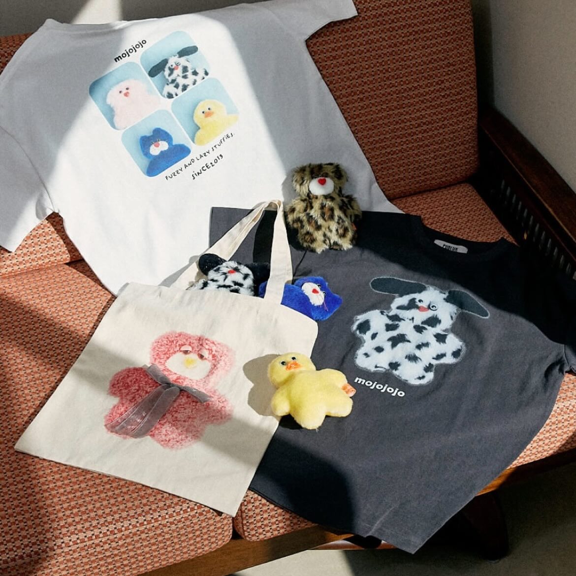 除了攻佔扭蛋市場,Mojojojo 也推出了不少周邊商品,例如貼紙、筆記本、便條紙、鑰匙圈等,在 Ayumi Ozaki 個人商城 LITTLE WINDOW 買得到。至於衣服、帆布袋等則是和服飾品牌 PUBLUX 的聯名款,可以到服飾品牌官網看看。