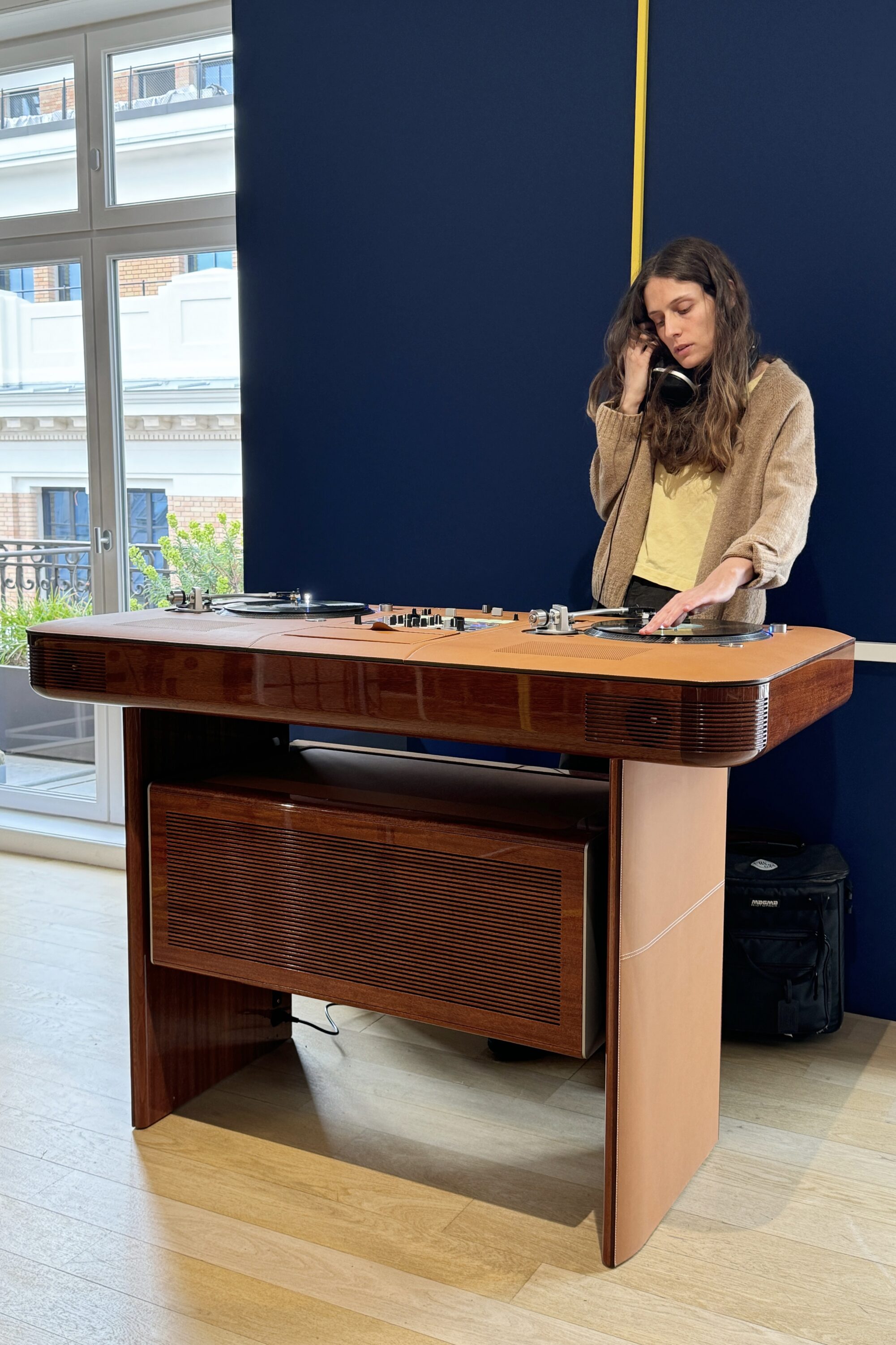 將音響與 DJ 桌合而為一?沒錯,Hermès 今年秋冬就帶來了這個令人眼前一亮的設計!結構以漆面桃花心木搭配自然色 Pippa 母牛皮,加上內建混音器與唱盤,並設有黑膠與電腦收納空間,根本是音樂人的夢幻逸品。