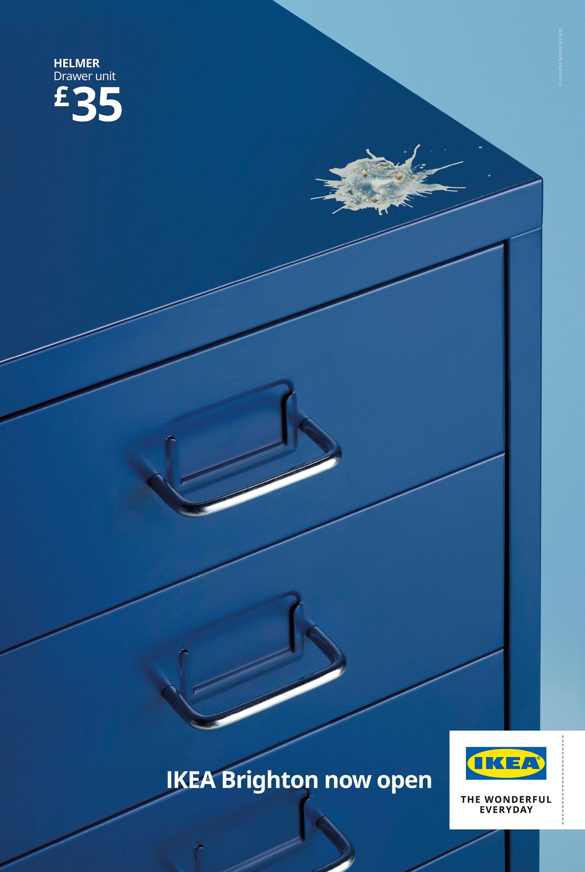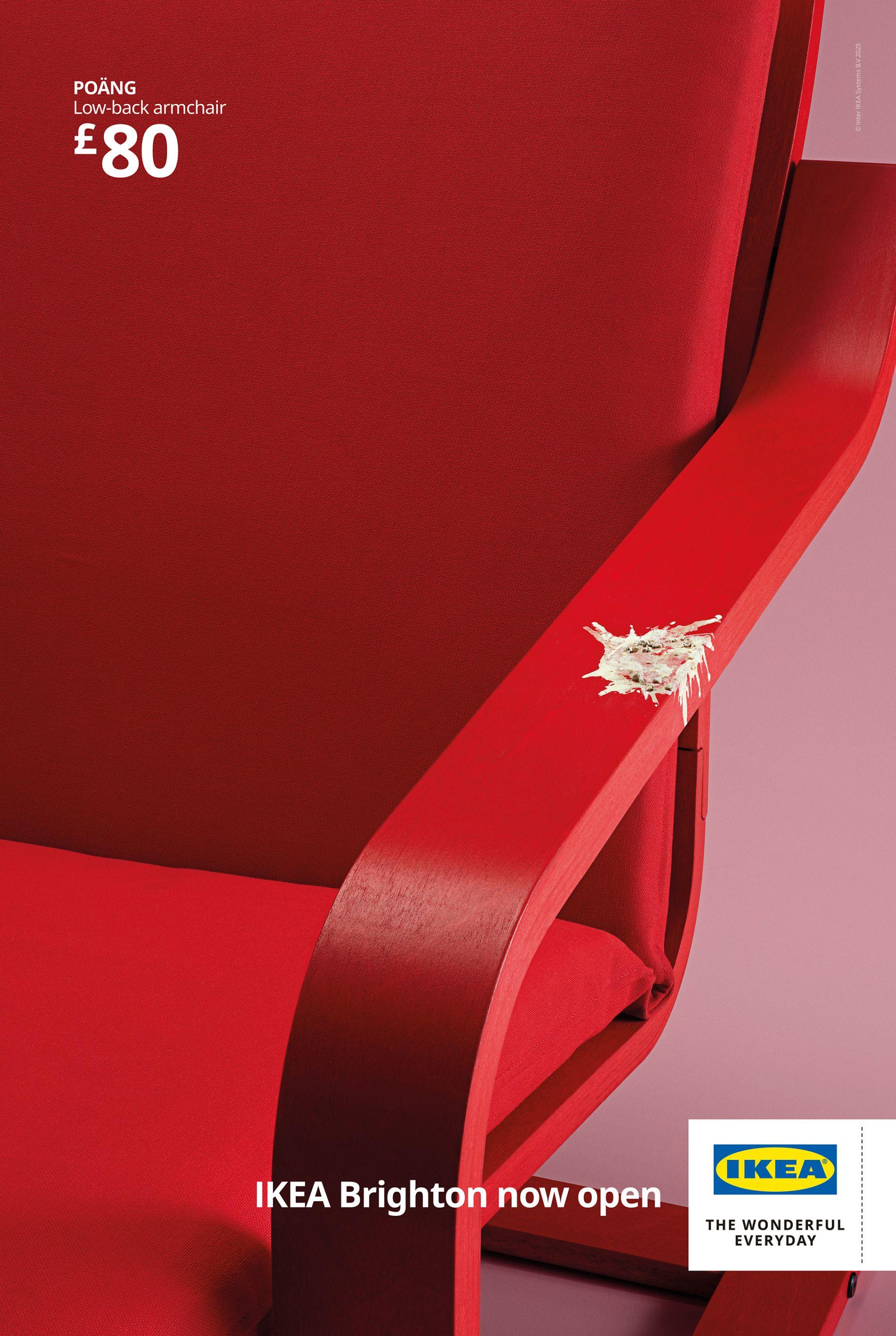 Brighton 以海鷗數量驚人聞名,居民對「隨時被空投」早已見怪不怪,甚至成了帶點無奈又好笑的城市日常,IKEA 正是看見了這個契機,設計出一系列畫面,包括家具被海鷗屎「精準擊中」,搭配一句乾淨俐落的文案:「IKEA Brighton 門店現已開幕」。