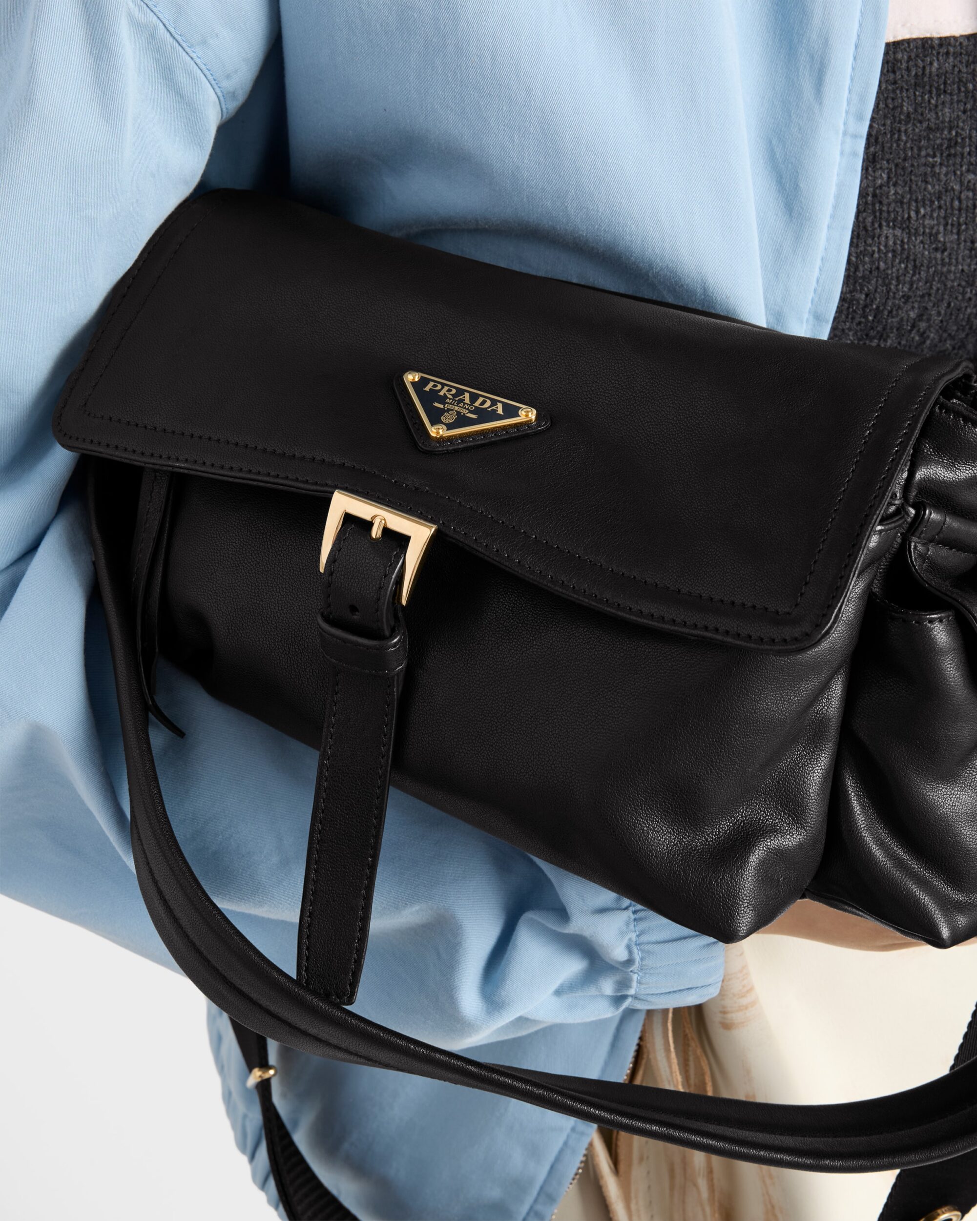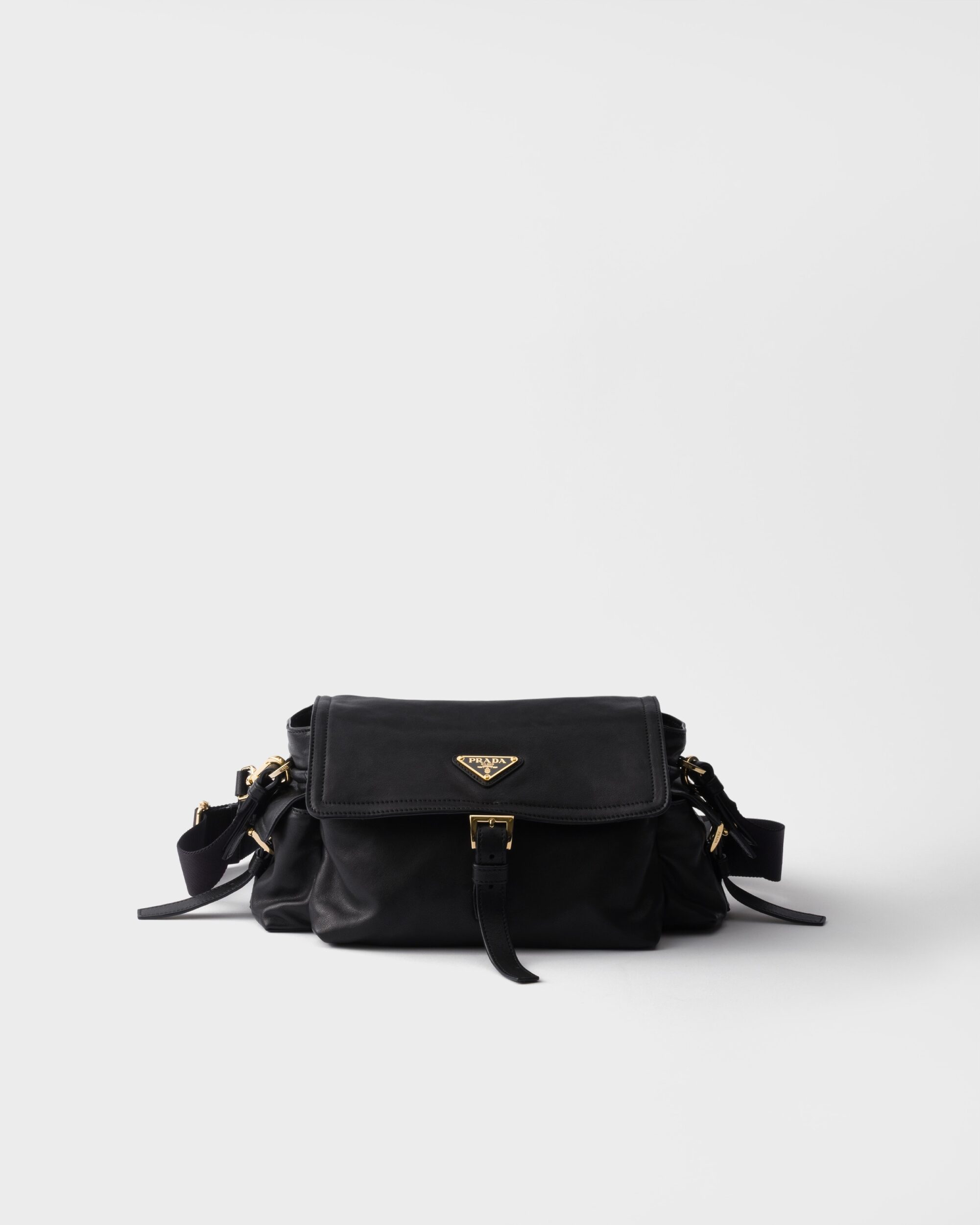 Prada Explore 包身整體線條流暢俐落,翻蓋造型則結合了拉鍊與側袋。此外,這款包款的內外也皆有豐富的收納空間,側邊還有兩個小口袋,從筆記本到鑰匙、手機與隨身小物,都能清晰分類,井然有序;翻蓋上鑲嵌的珐瑯三角 Logo 更為簡約外觀注入了經典識別,呼應品牌一貫的細節講究。