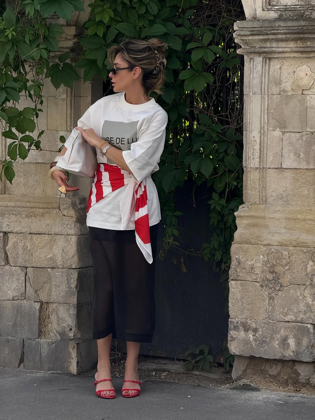 要說今年夏天的時尚關鍵字,榜上勢必會有「絲巾」這件單品,無論是綁在頭上、繫在脖子,還是掛在包包手柄上都很常見,尤其「綁在腰際」上的穿法更是越來越受歡迎。