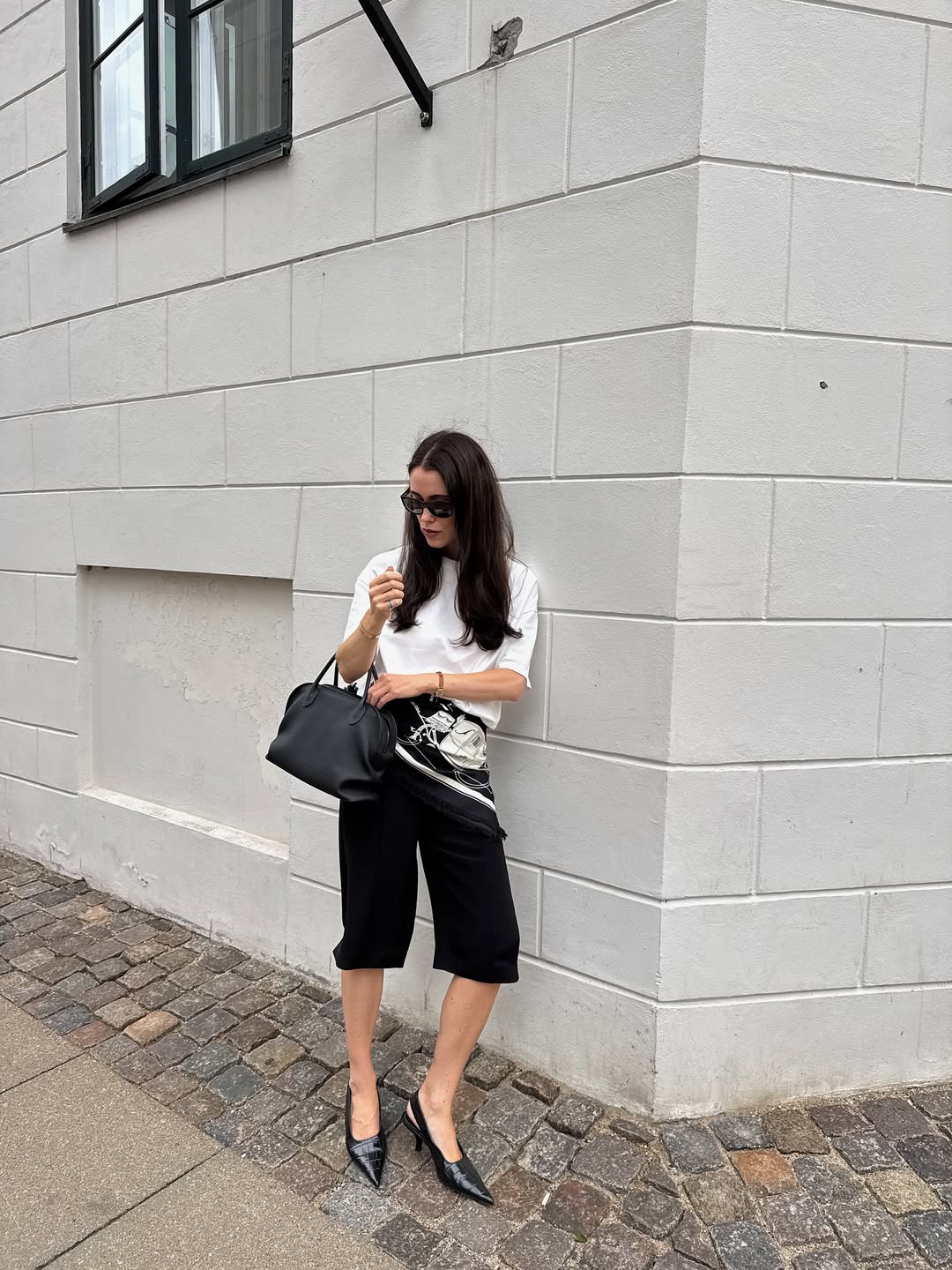 絲巾向來給人優雅的感覺,前陣子流行回來的 Capri Pants 七分褲則是休閒代表,這兩個看似不相容的單品卻意外有點配。潮人們將絲巾綁在七分褲上方,打個結讓絲巾垂下來,讓七分褲多了幾分靈動與年輕,是個不張揚的穿搭小巧思。