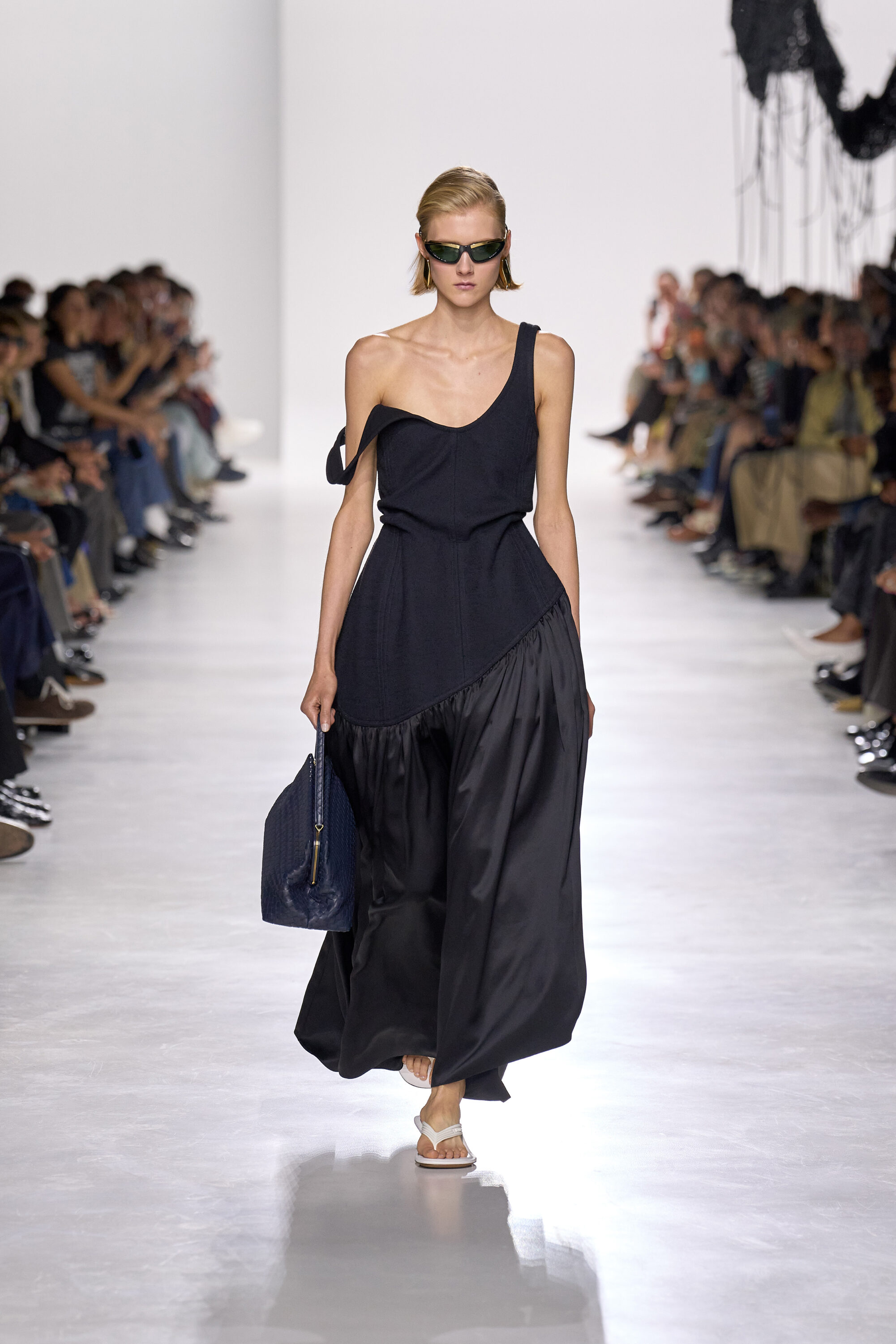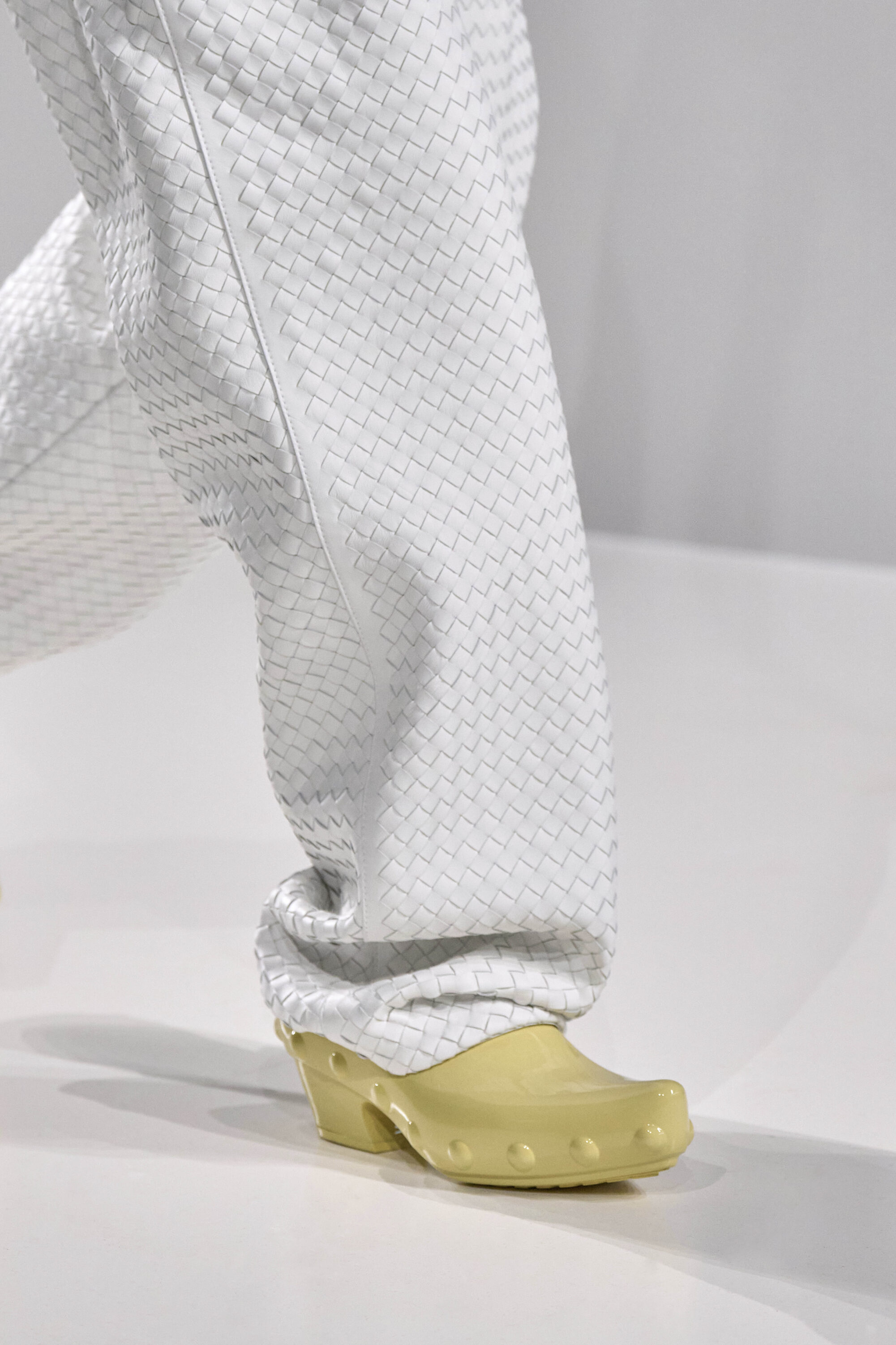 鞋履方面,不得不說尖頭木屐與加寬 Intrecciato 夾腳涼鞋還真是很好看,未來說不定要引起一番熱議。
